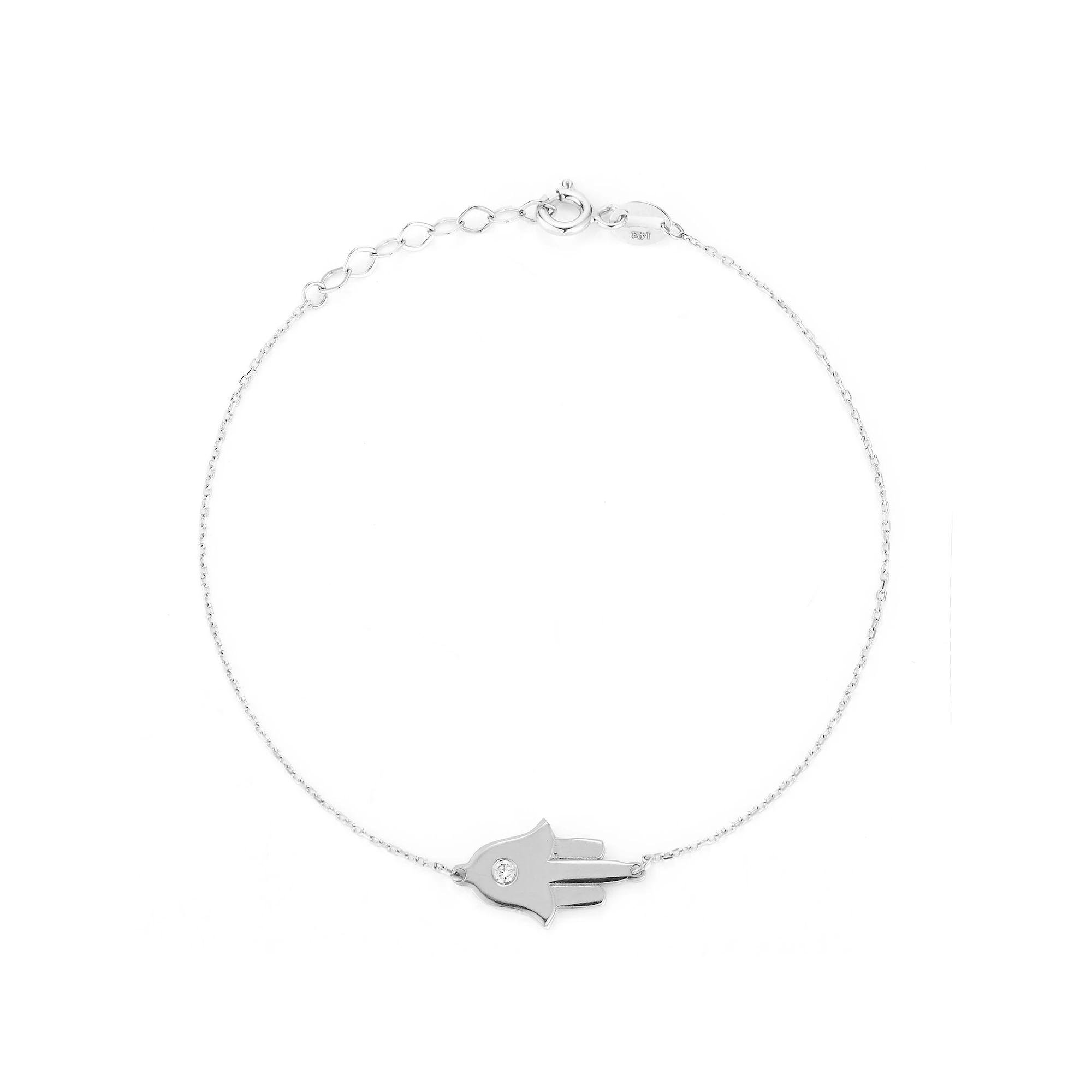 Give your jewelry collection a refresh with this eye-catching 14k gold, diamond-accented LUMINOR GOLD Hamsa hand bracelet. Give your jewelry collection a refresh with this eye-catching 14k gold, diamond-accented LUMINOR GOLD Hamsa hand bracelet. Length: 7 in. Metal: 14k gold Finish: polished Packaging: velvety pouchDIAMOND DETAILS Total weight: less than 1/10 ct. Setting: bezel Diamond weights are approximate. Diamond Total Weights may vary between .01 and .13 ct. Some diamonds consist of fewer than 17 facets. Gemstones may have been treated to enhance their appearance. Special care may be required. Please visit our Gemstone Treatment & Special Care Guide for more information. Image(s) may be enlarged to show detail. Please note, due to the high value of this item, a signature may be required upon delivery. Size: 7". Color: White. Gender: female. Age Group: adult.