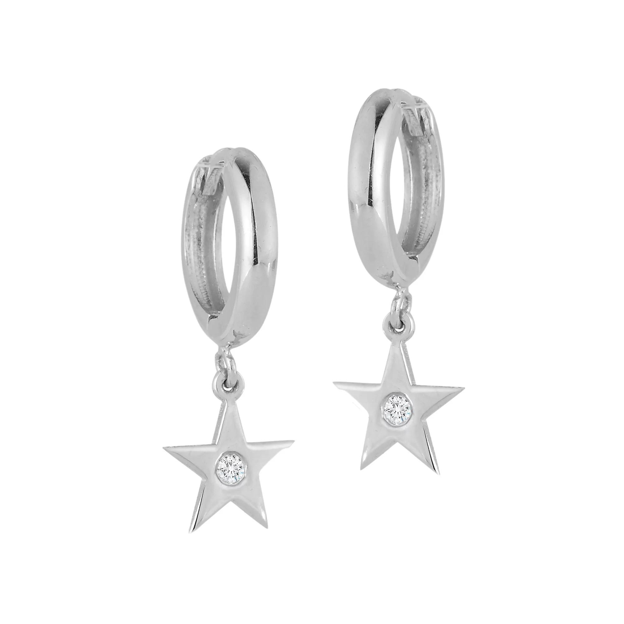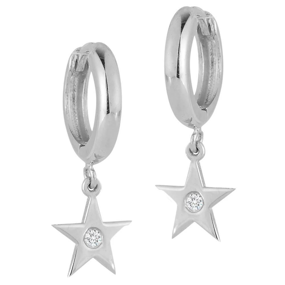 LUMINOR GOLD 14k Gold Diamond Accent Star Charm Huggie Drop Earrings, Women's, White