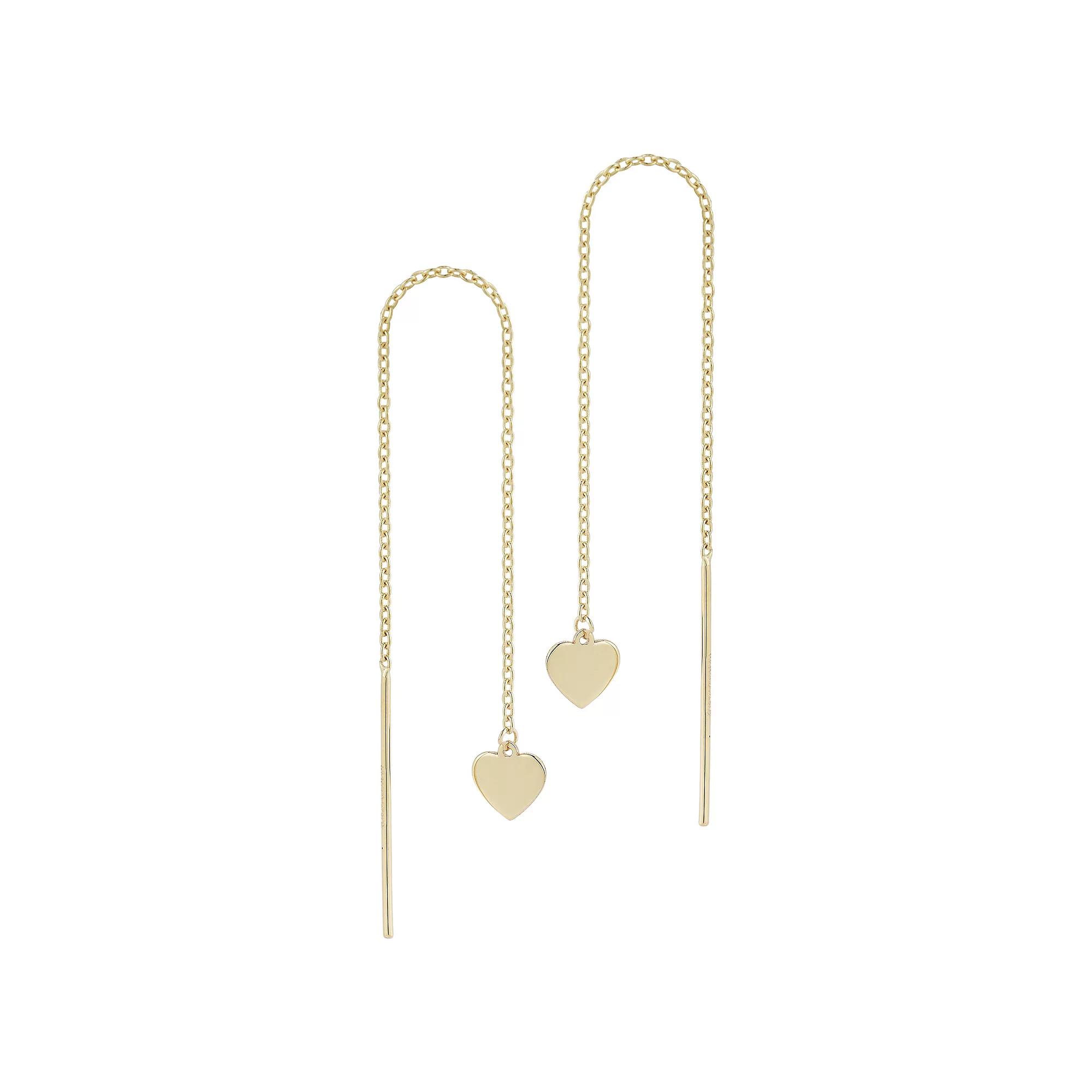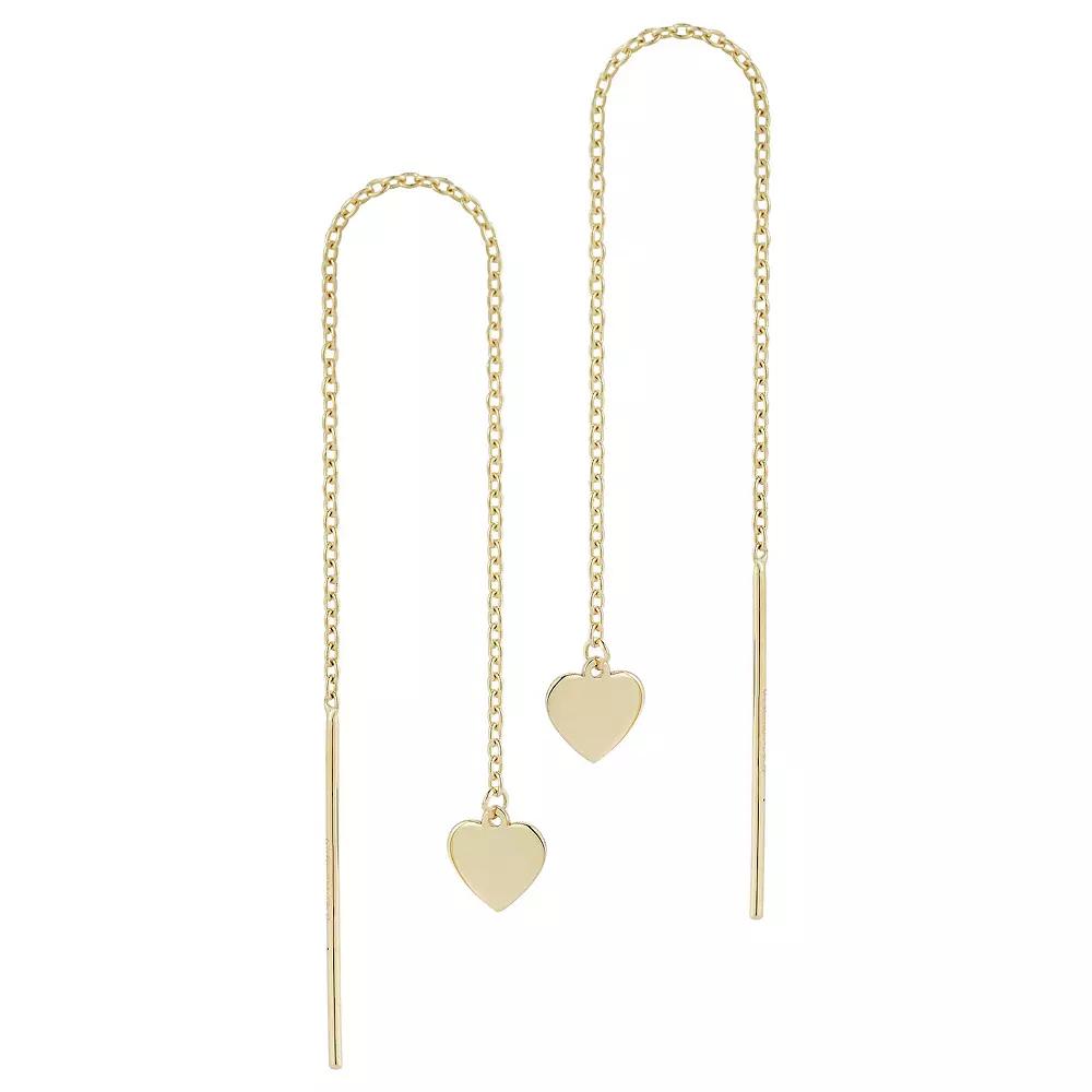 Add some extra love to your day with these LUMINOR GOLD heart threader earrings. Click on this JEWELRY & WATCHES GUIDE to learn about fit, styles, materials and more! Add some extra love to your day with these LUMINOR GOLD heart threader earrings. Click on this JEWELRY & WATCHES GUIDE to learn about fit, styles, materials and more! FEATURES 2 in. drop Backings: threader Metal: 14k gold Plating: 14k gold Finish: polished Packaging: velvety pouch Size: One Size. Color: Yellow. Gender: female. Age Group: adult.