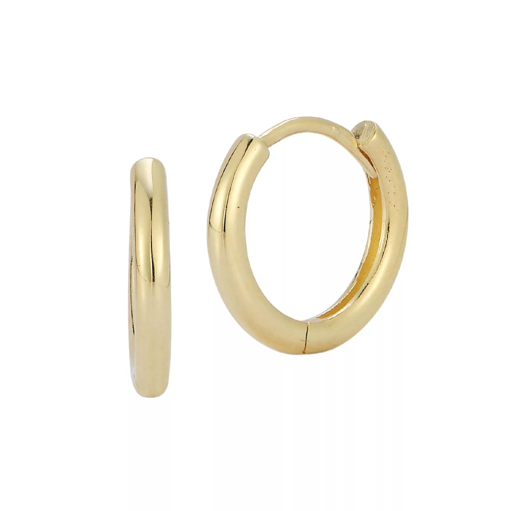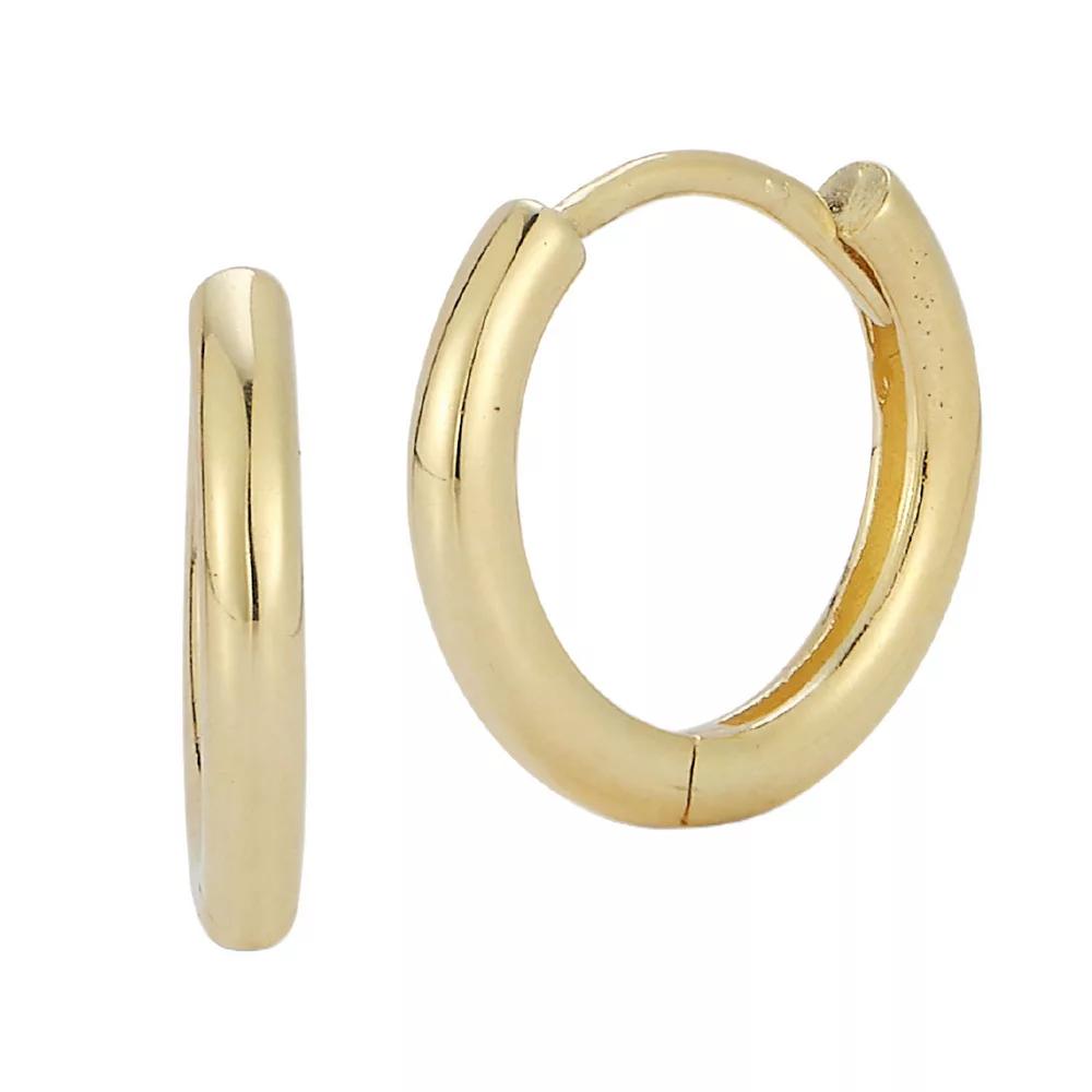 These LUMINOR GOLD huggie hoop earrings deliver a polished look you can take anywhere. These LUMINOR GOLD huggie hoop earrings deliver a polished look you can take anywhere. Length: 0.4 in. Backings: snap-bar closure Metal: 14k gold Finish: polished Packaging: velvety pouch Size: One Size. Color: Yellow. Gender: female. Age Group: adult.