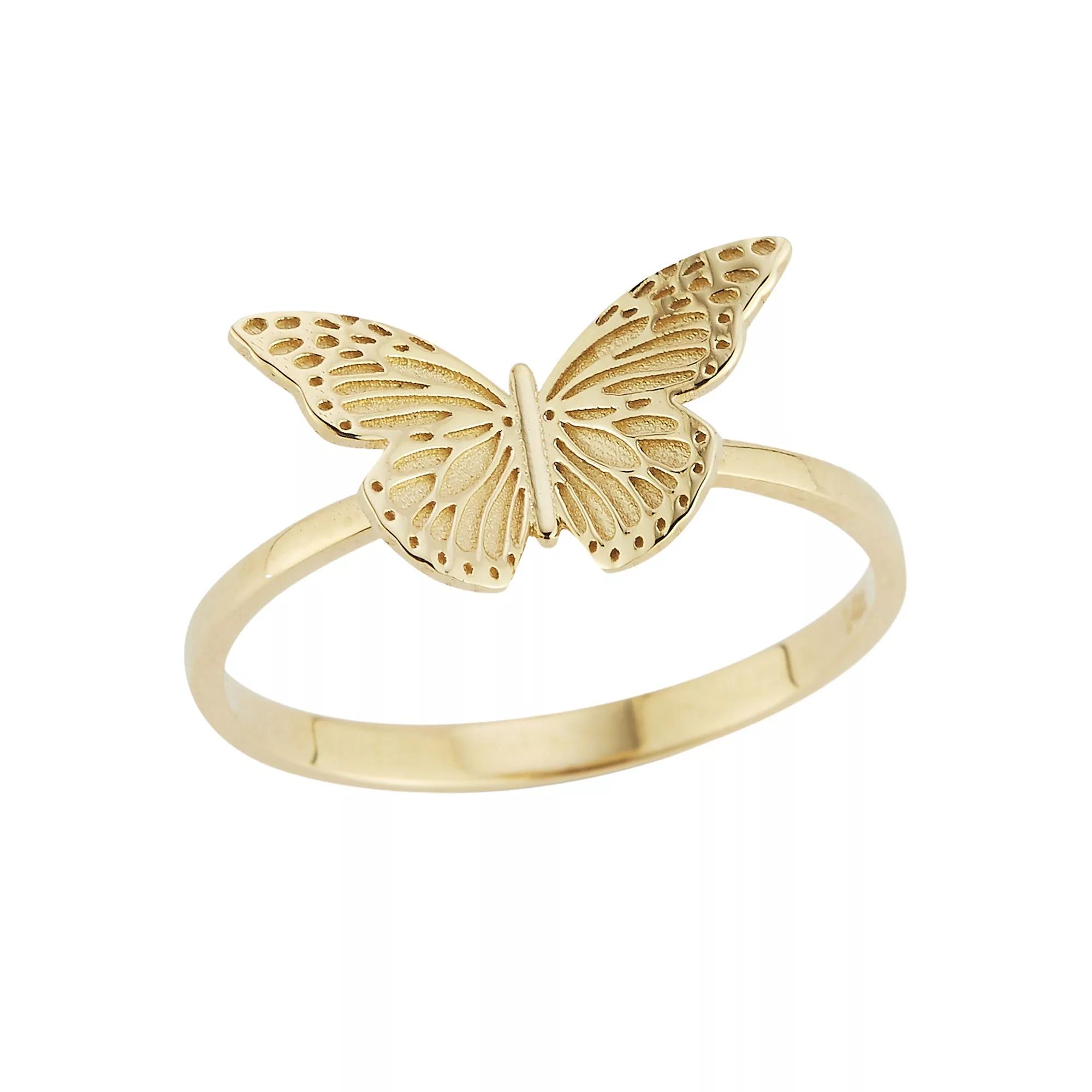 This LUMINOR GOLD band ring features a textured, 3D butterfly that is sure to get noticed. This LUMINOR GOLD band ring features a textured, 3D butterfly that is sure to get noticed. Width: 1.5 mm Metal: 14k gold Finish: polished Packaging: velvety pouch Size: 6. Color: Yellow. Gender: female. Age Group: adult.