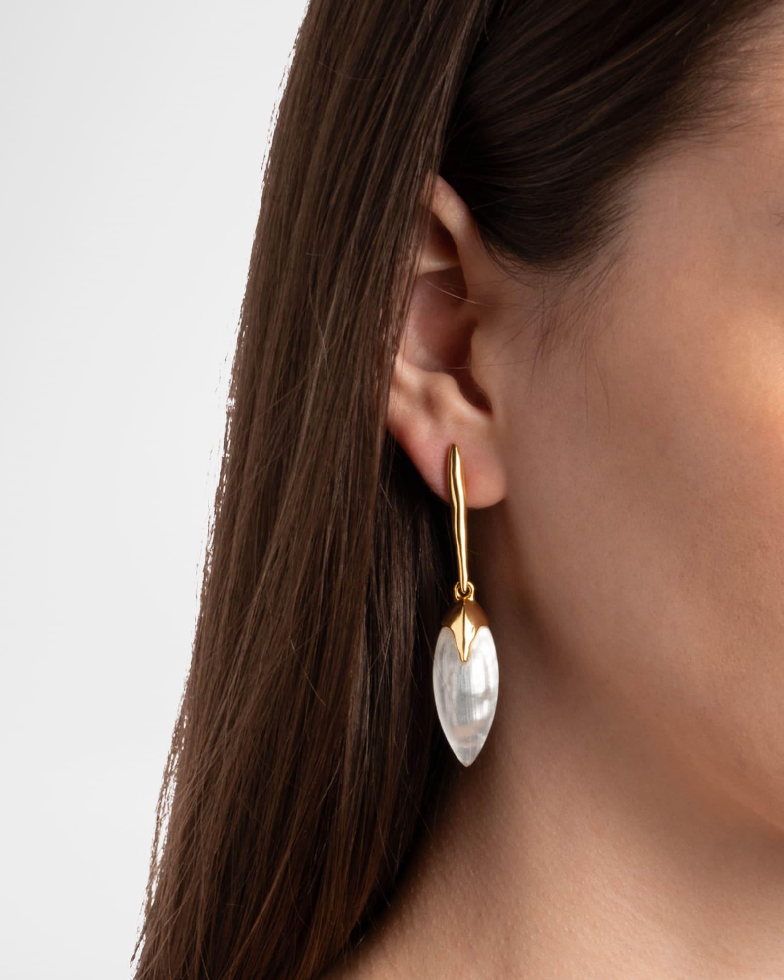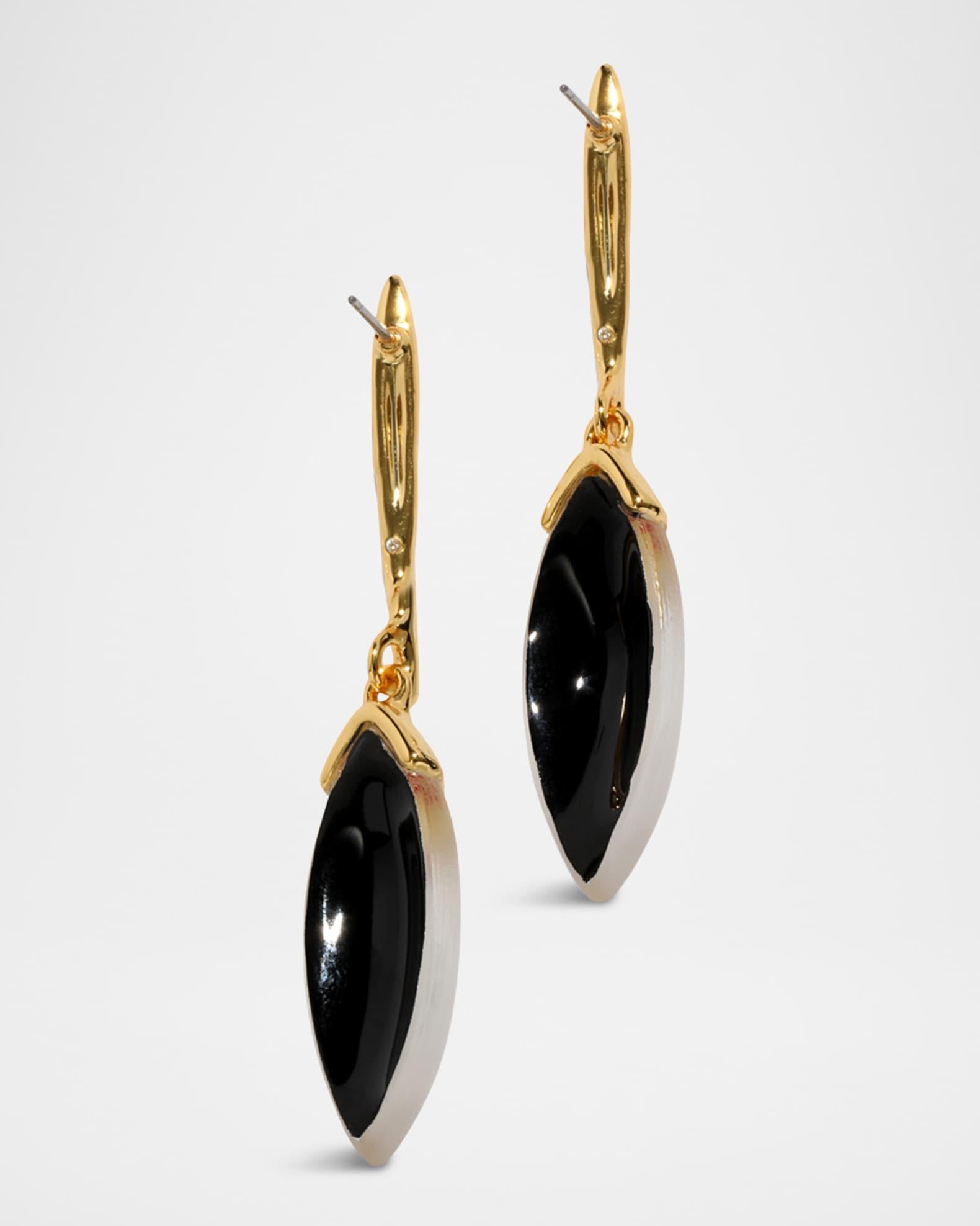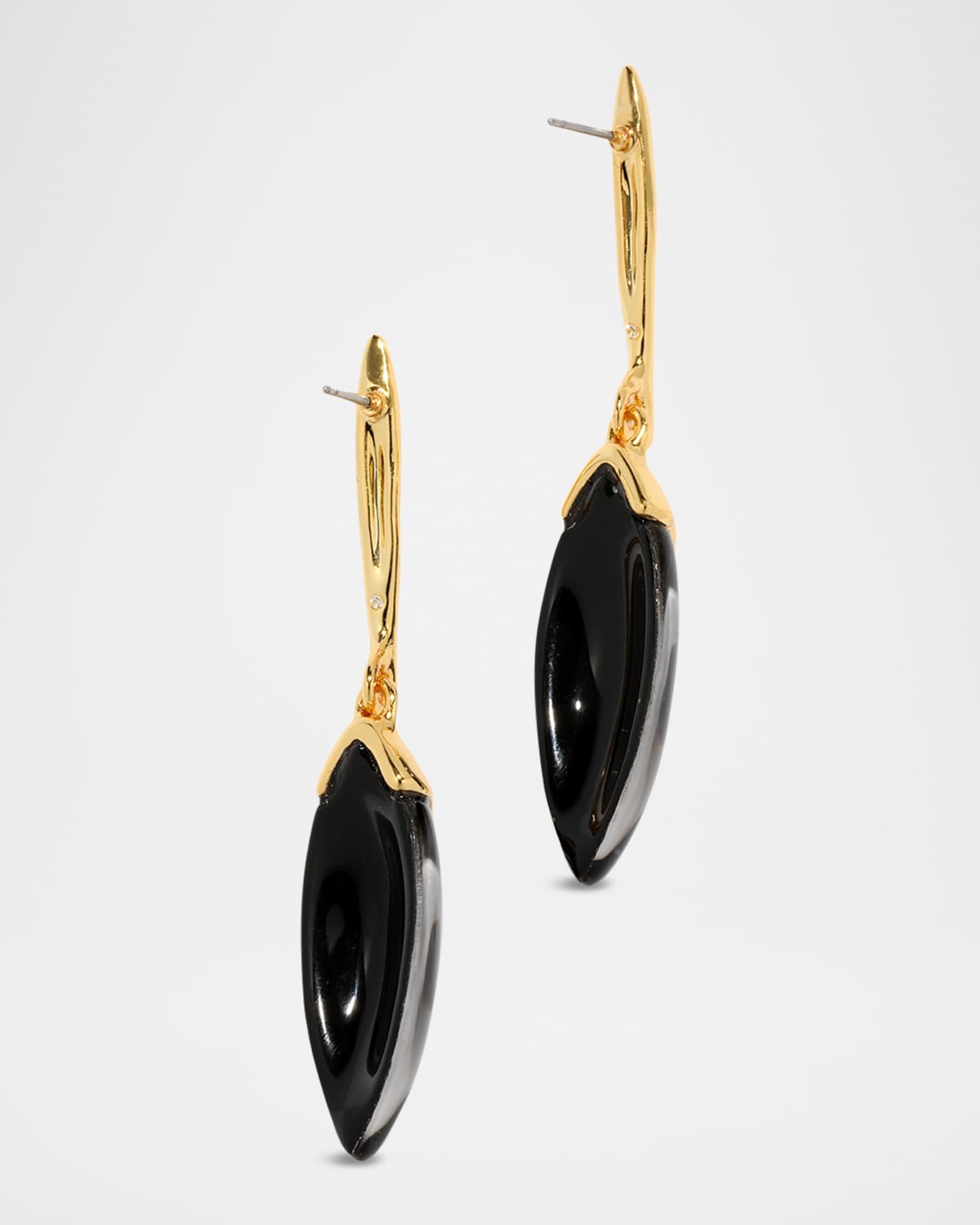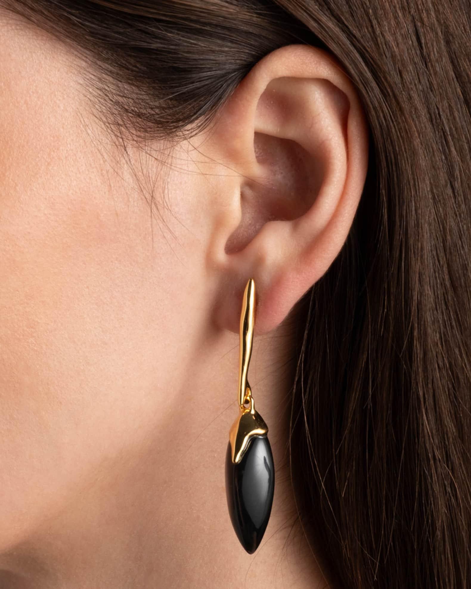 Alexis Bittar earrings are made with hand-carved and hand-polished Lucite® Approx. 2.5" length x 0.5" width 14-karat gold plated brass For pierced ears Spot clean Made in USA from imported materials To clean your jewelry, wipe with a soft untreated cloth and store separately to preserve colors and avoid scratches.