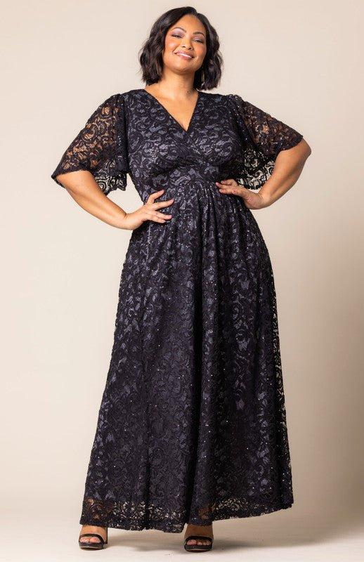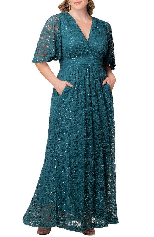 Steal the spotlight at your next soiree in our Plus Size Luminous Sequin Lace Evening Gown. This party dress features a flattering surplice neckline, flirty flutter sleeves, and a graceful A-line silhouette that elegantly drapes to the floor. With a hidden surprise pockets this formal gown is perfect for the best-dressed curvy wedding guest or any special occasion, from cocktail parties to semi-formal gatherings, black-tie events, and galas. Available in classic colors like black and navy blue, this long formal dress is designed for curvy figures and crafted exclusively for plus size women. Exclusively in sizes 0x,1x,2x,3x,4x,5x, 12,14,16,18,20,22,24,26,28,30 and 32.