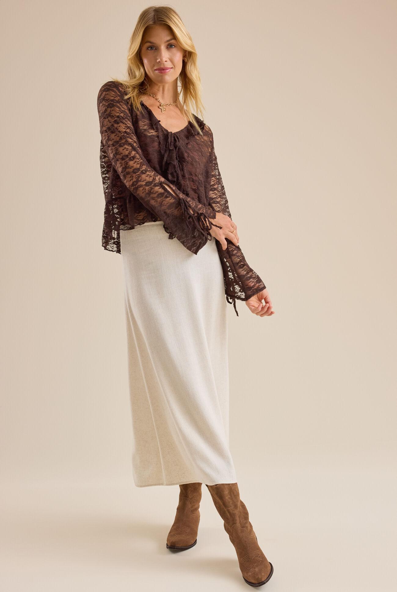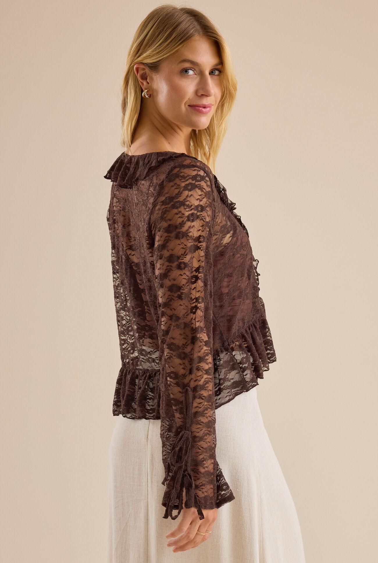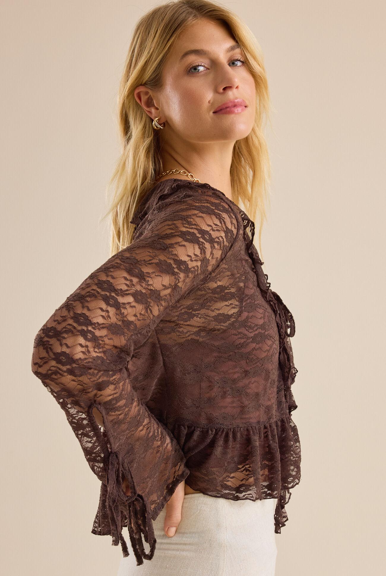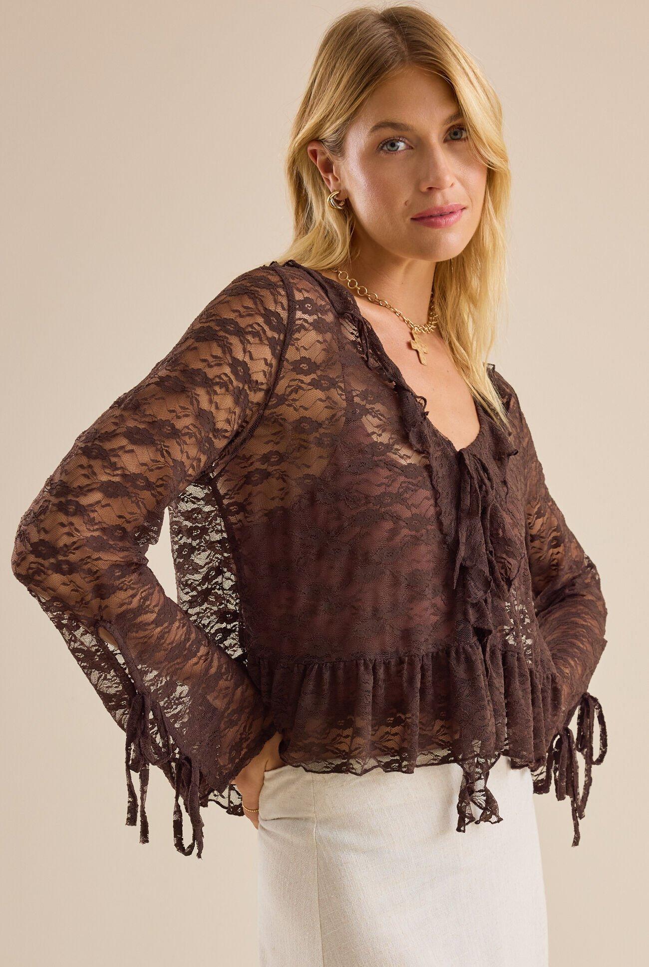 This beautiful top is designed to add a touch of romantic elegance to any outfit. Crafted from delicate, intricate lace, it features a playful tie-front detail that allows for an adjustable fit.