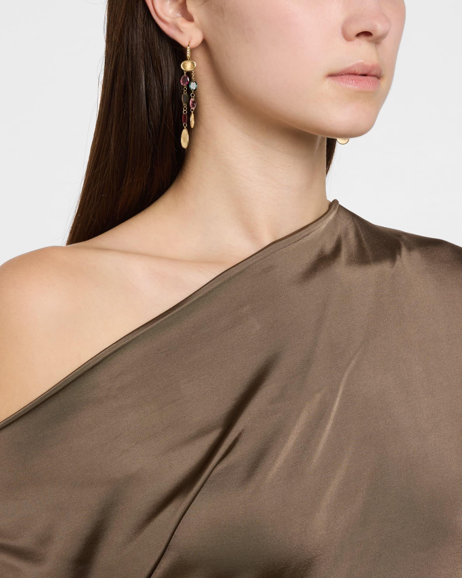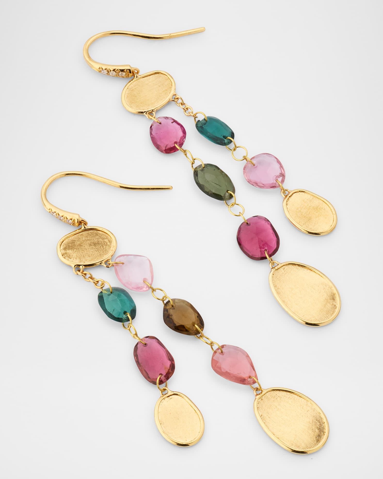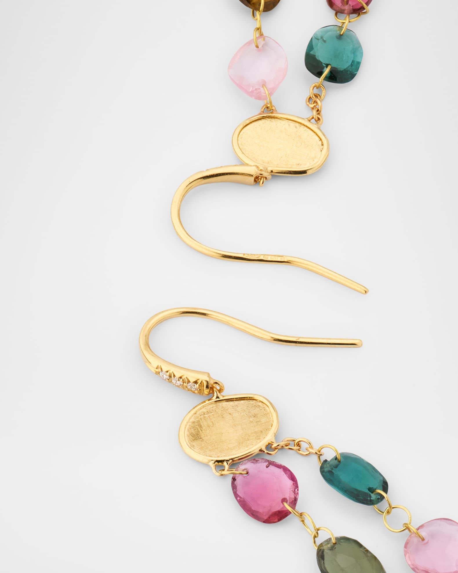 Marco Bicego drop earrings Engraved 18-karat yellow gold Multi-color tourmaline White diamonds; 0.05 total carat weight For pierced ears Professional cleaning recommended Made in Italy Please note: Each Marco Bicego piece is unique and actual stones used may vary.