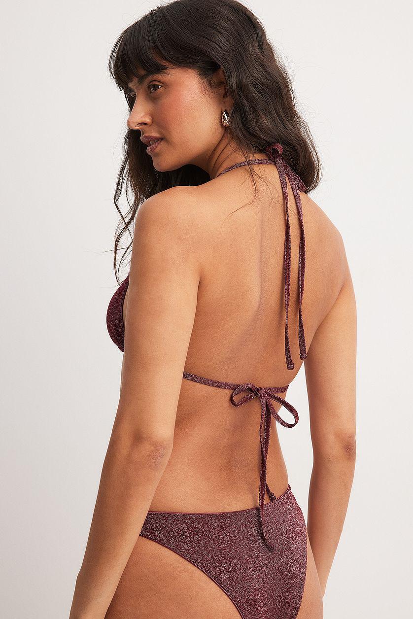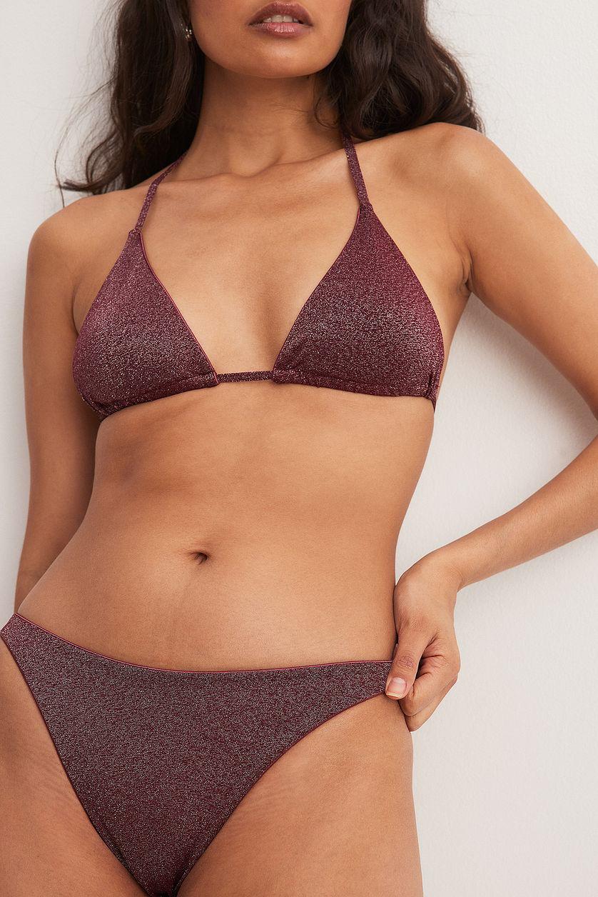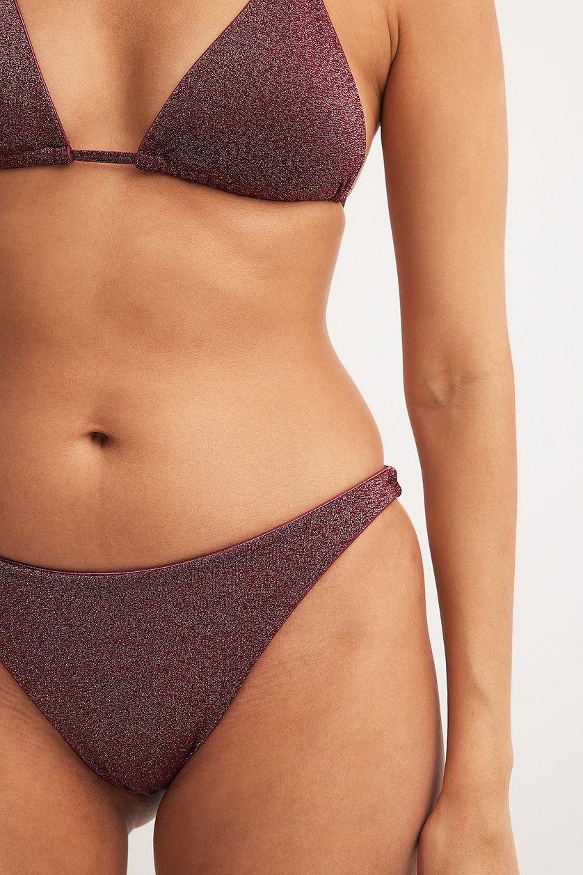 This bikini panty features a brazilian cut. It has a high cut and a lining.