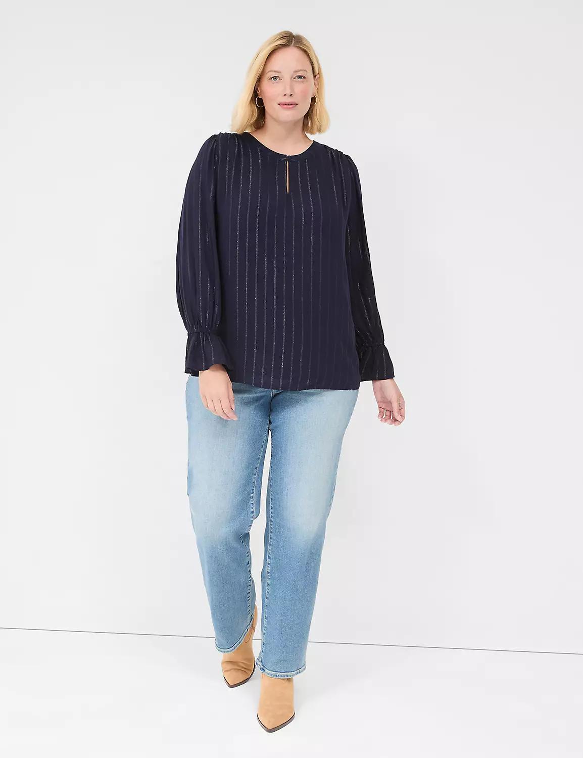 Lurex Crew-Neck Keyhole Blouse