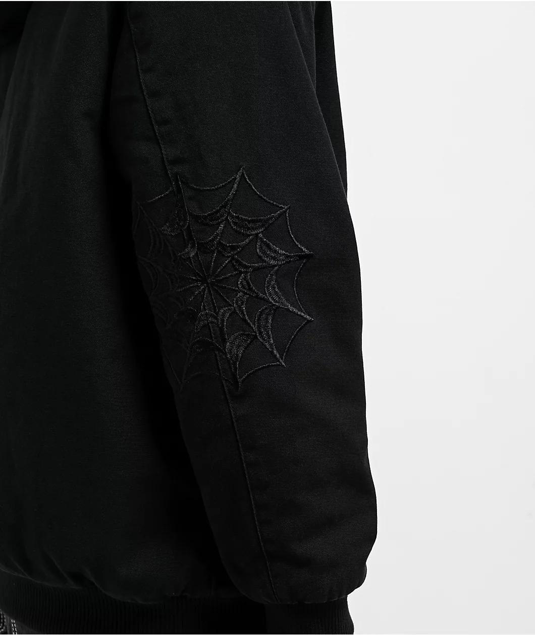 Lurking Class by Sketchy Tank presents the Death Leopard reversible work jacket with a black canvas exterior. The soft pink leopard pink faux fur lining has skull designs throughout, and can be reversed to be worn with the pattern fully visible. Dual