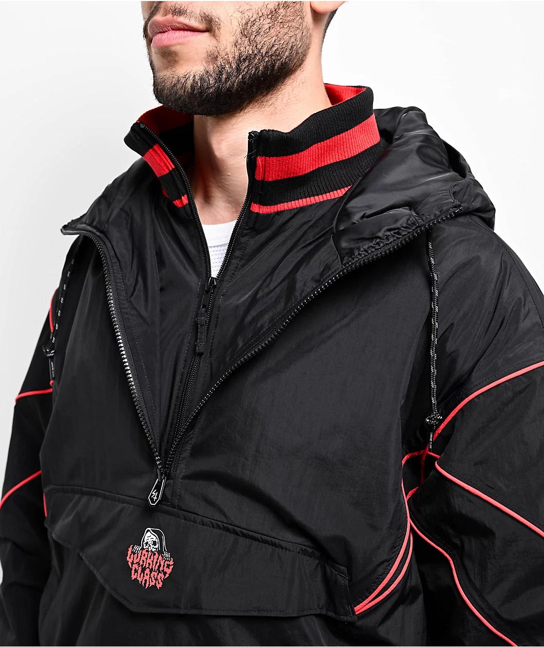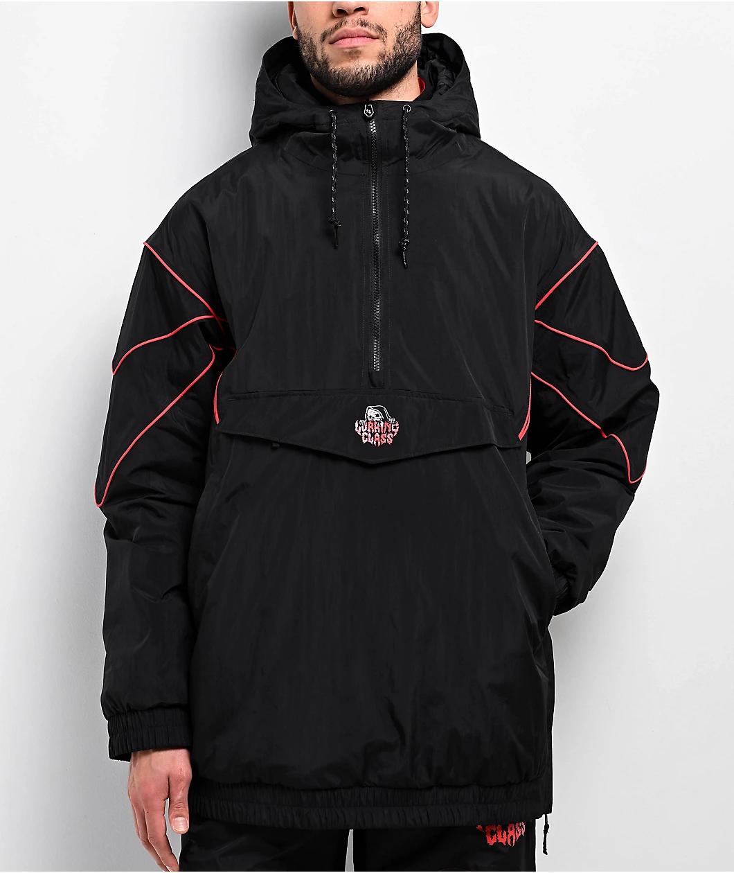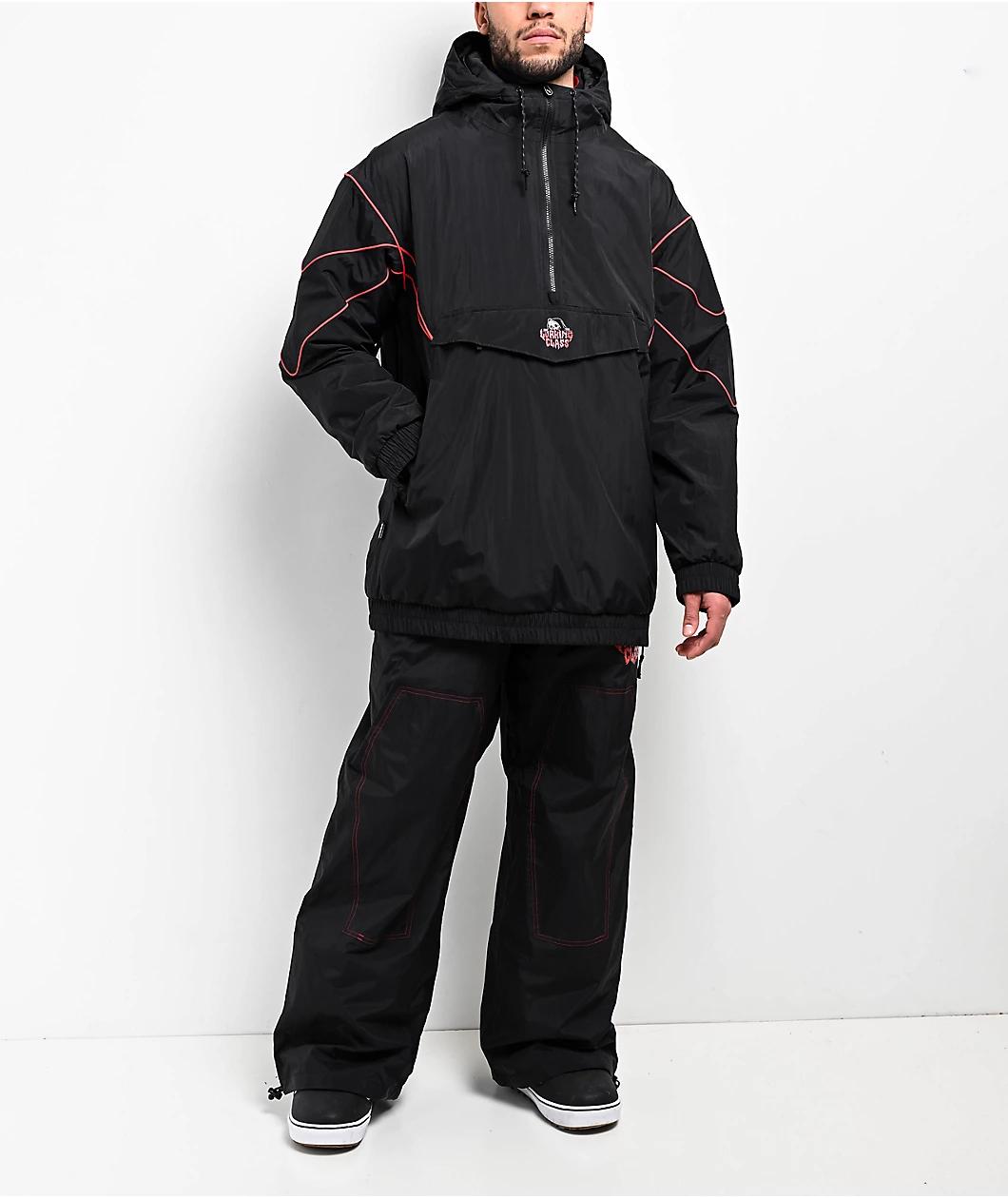 Add a tough undertone to the slopes with the Lurking Class by Sketchy Tank Thorn anorak snowboard jacket in a black and "Poinsettia" red colorway. Providing warmth and comfort, this jacket has a 10k waterproof rating, a cozy polyfill lining, and an a