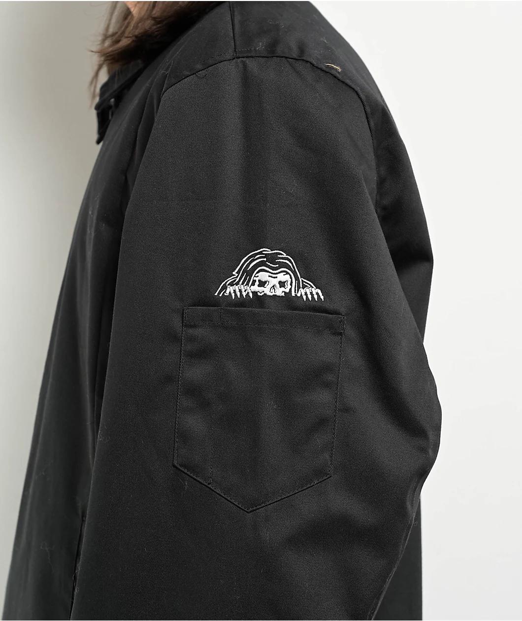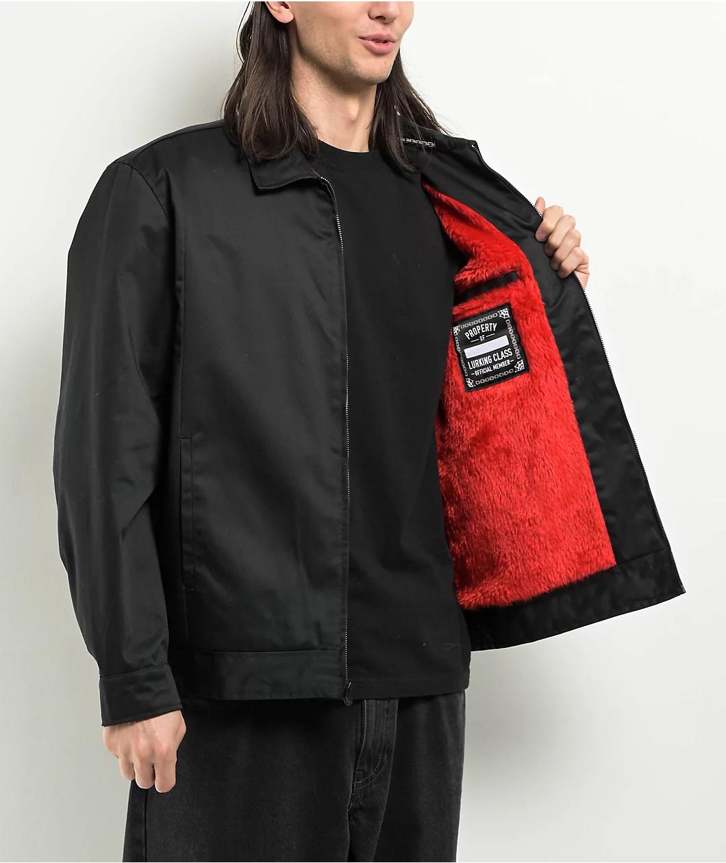 Arriving in a solid black color scheme with a bright red faux-fur lining, Lurking Class by Sketchy Tank delivers the Unchained Gas Station jacket with embroidered brand graphics on the back and left sleeve. Employing dual slash hand pockets, an inter