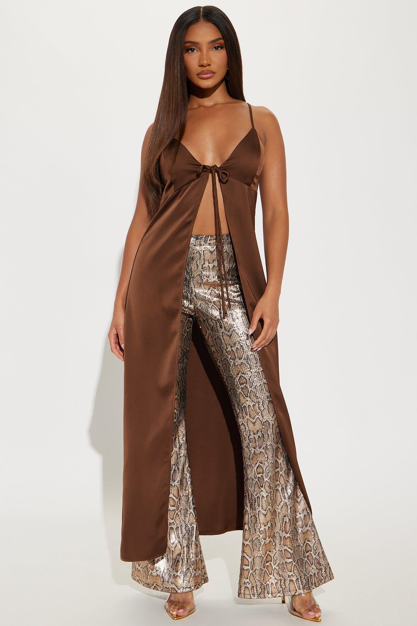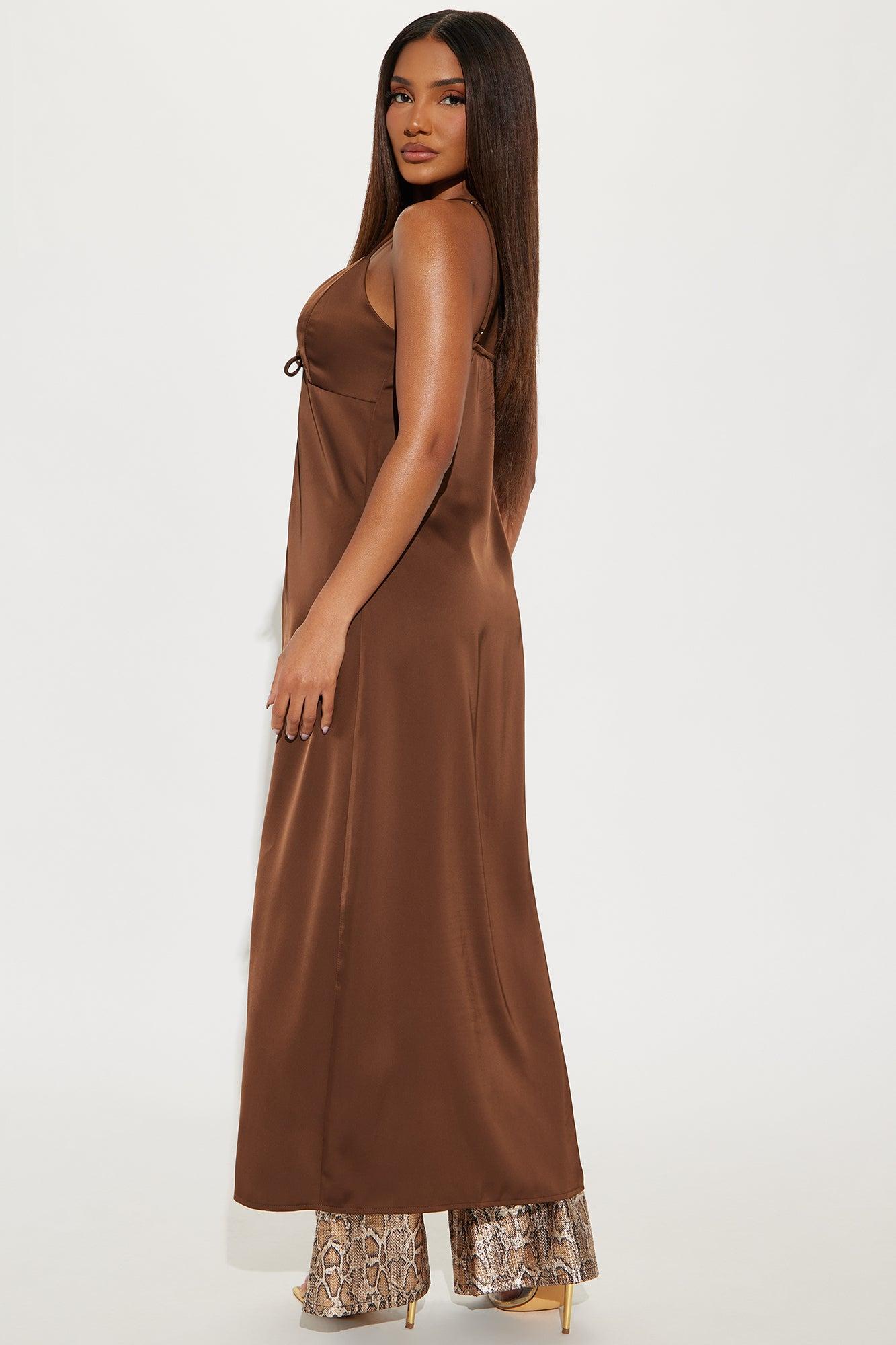 Lustful Desire Satin Maxi Top - Chocolate