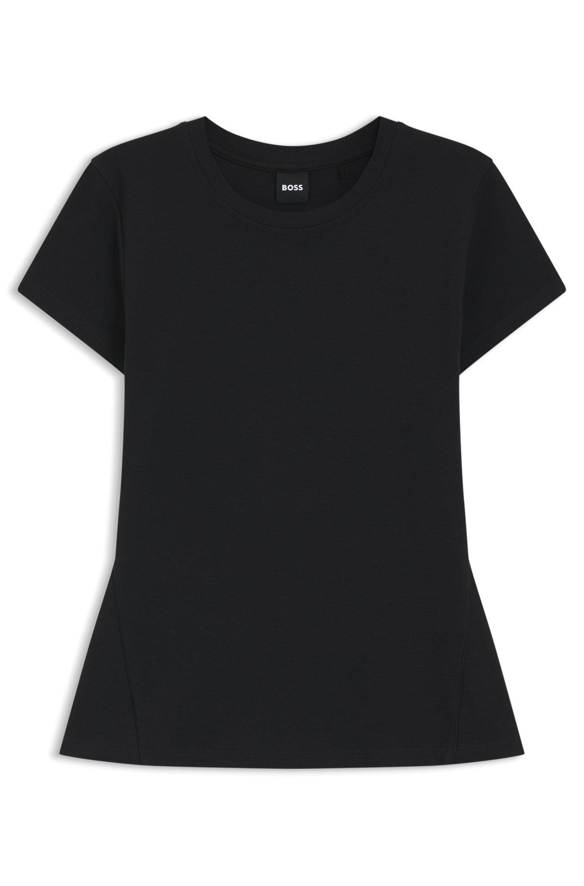 Lustrous-piping T-shirt in cotton crepe