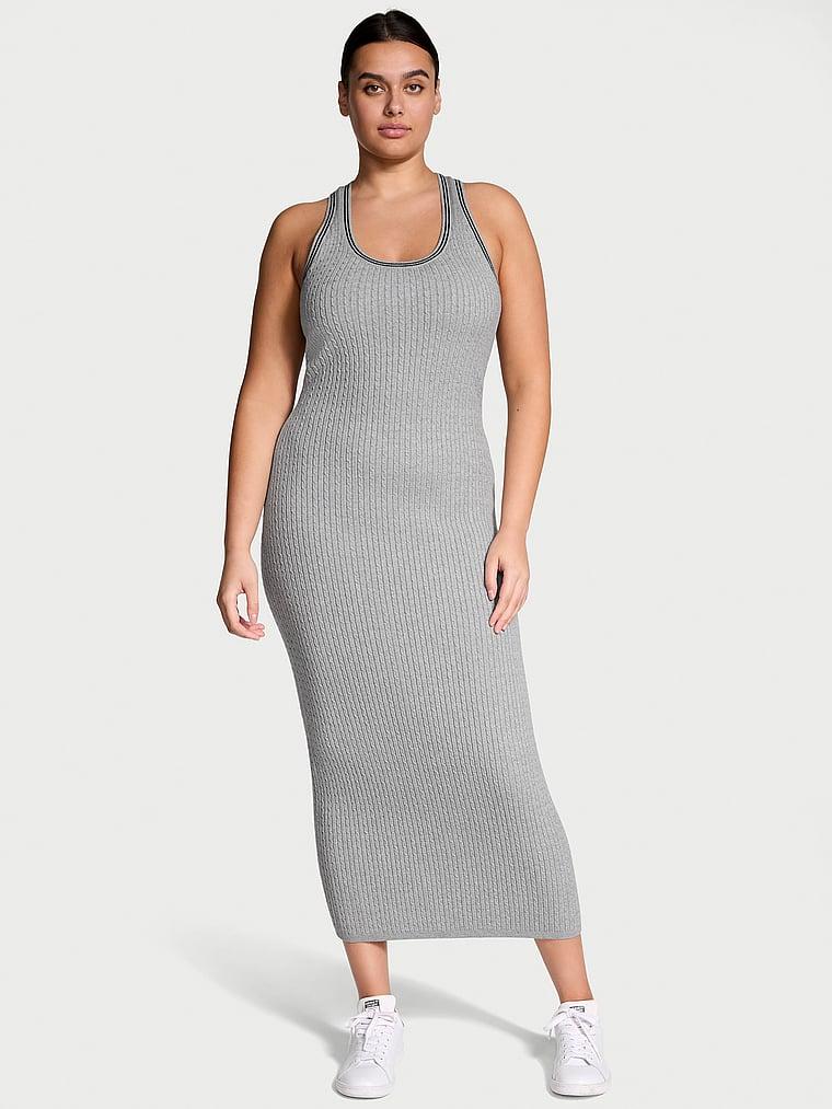 Cooler weather can't come soon enough when you have cute-and-cozy cable-knit styles that are as soft as they are chic. Tank styling, complete with racerback cut, gives this long, layerable look a subtly sporty edge. Racerback styling Sleeveless Signature logo detailing Ribbed knit trim Hits at ankle Supersoft LENZING™ ECOVERO™ viscose fibers derived from sustainable wood sources Machine wash Imported