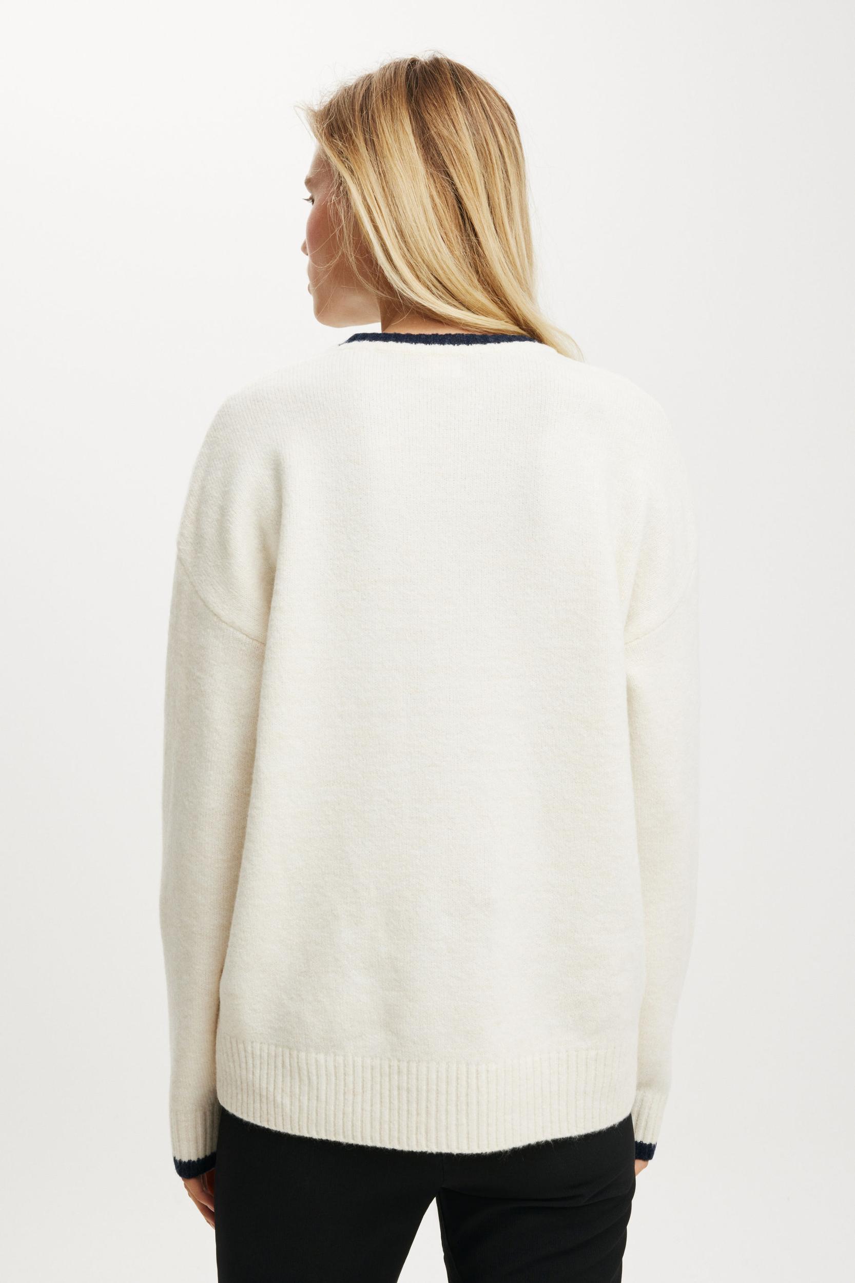 Responsible Materials: 28% Recycled Polyester ,Dropped shoulder ,Relaxed fit ,Long Sleeves ,Crew neck ,Rib neck band ,True knit Main: 69% Acrylic, 28% Polyester, 3% Elastane.