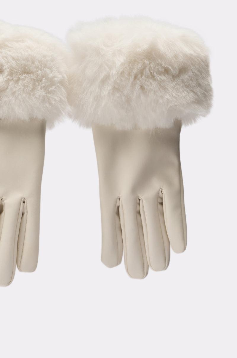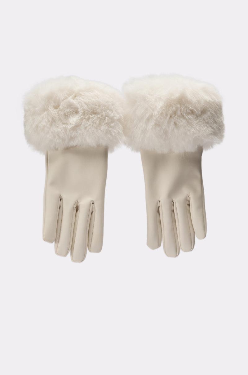 The AKIRA Label Luxe Life Faux Fur Gloves are crafted from sleek faux leather in a bright white colorway and feature soft inner lining, a five-finger design, and luxurious faux fur cuffs. Complete with a mid-forearm length silhouette, and conductive cloth on the thumbs and pointer fingers so you can easily navigate your touch screens without being susceptible to the cold! - Main: 100% Polyurethane, Lining: 100% Polyester- Hand Wash Only- Imported (all measurements approximate from size O/S)- 11” LengthProduct ID: 1068424