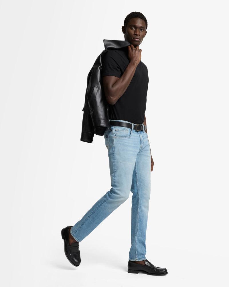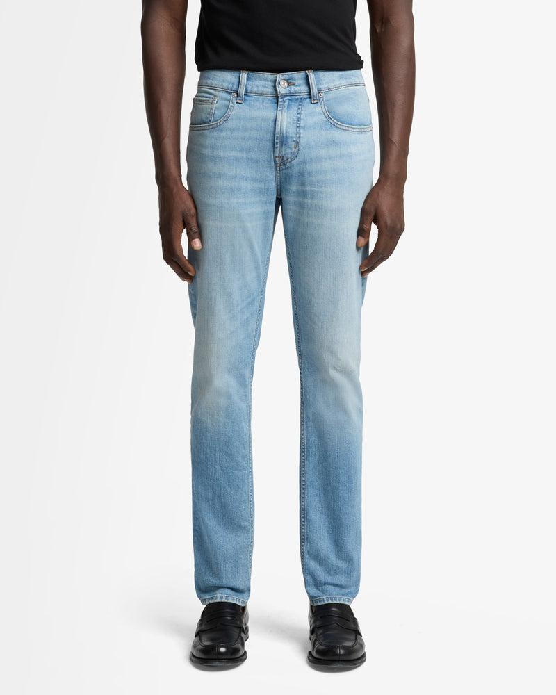 Fits like: A slim, tapered jean offering a modern, skinny fit that tapers down from knee to hem for a polished, refined look. Feels like: The next evolution of denim with a silky-soft touch, super stretch, and high recovery. The Details: Light Indigo Wash Zip closure