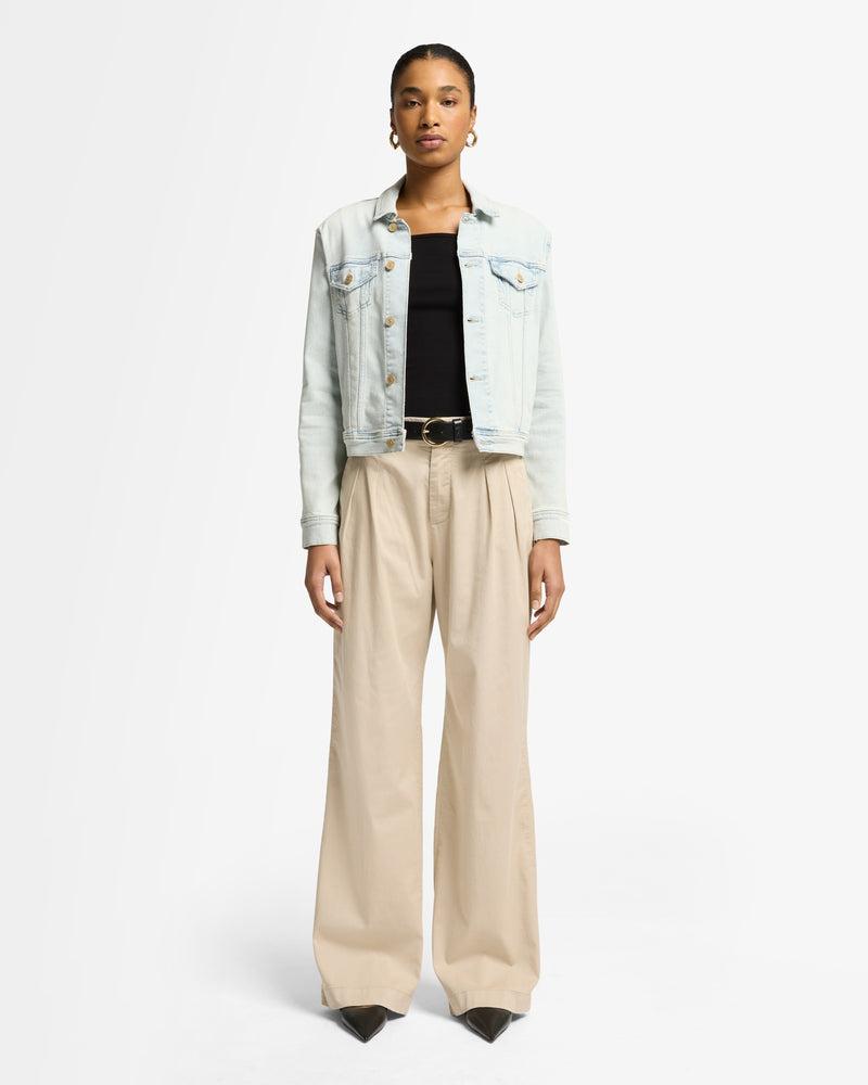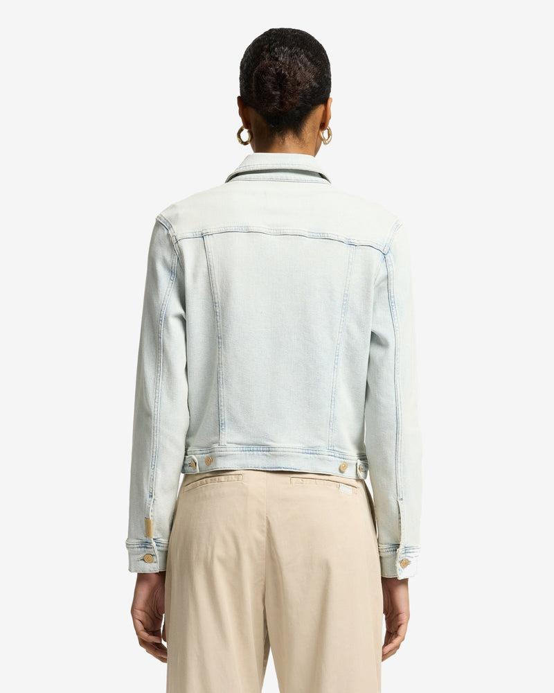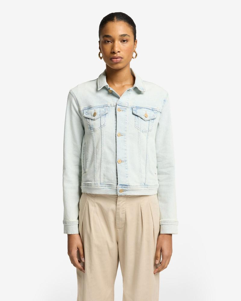 Fits like: A timeless denim jacket with a slightly relaxed fit that hits just above the hips. Feels like: Luxe Vintage fabric with a soft hand feel and medium stretch for added comfort and flexibility. The Details: Medium blue wash Classic button-front closure Chest flap pockets and side slip pockets Buttoned cuffs for