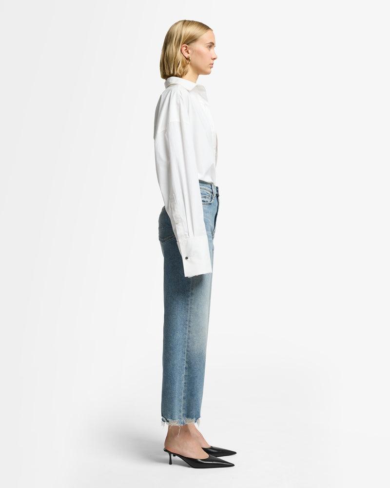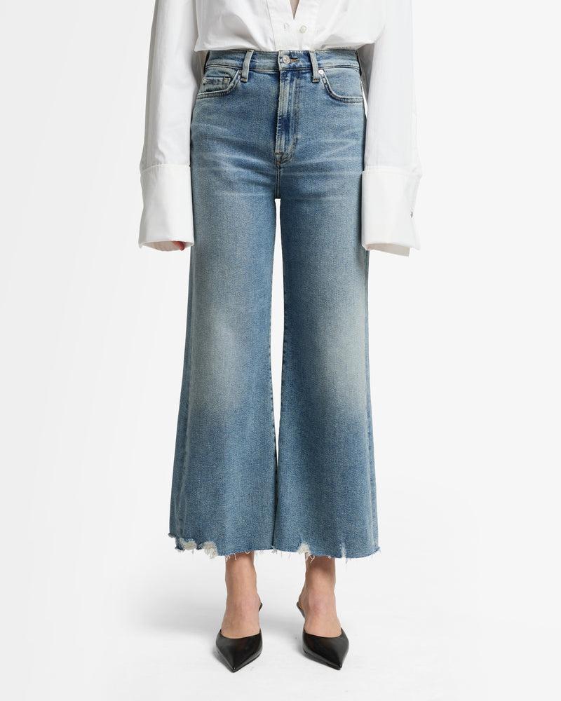 Fits like: A high-rise wide-leg fit with a cropped length for a bold yet breezy silhouette. Feels like: Luxe Vintage softness, a medium-weight denim with just the right amount of stretch for structure, comfort, and that effortlessly cool, vintage-inspired feel. The Details: Medium wash Zip fly with button closure Back