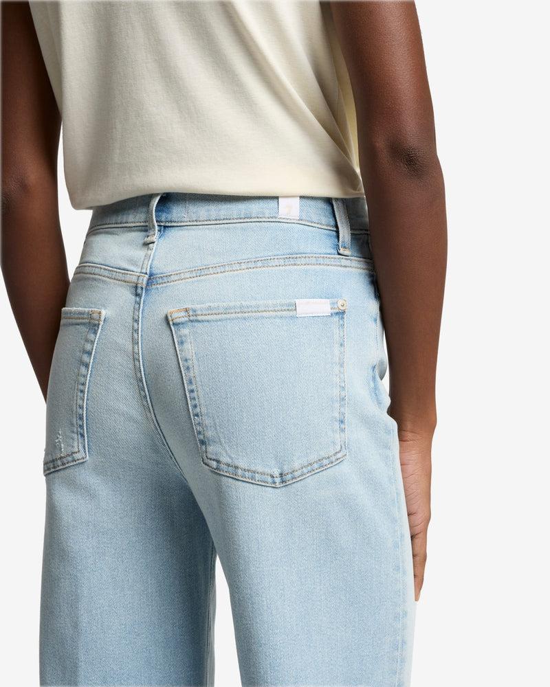 Fits like: An ultra high rise fit that cinches at the waist and eases into a relaxed, wide leg crop. Feels like: The comfort of well-loved denim, reimagined. Luxe Vintage brings a soft, broken-in texture with just enough stretch to keep it feeling easy and timeless. The Details: Light Indigo Wash Whiskering and sanding