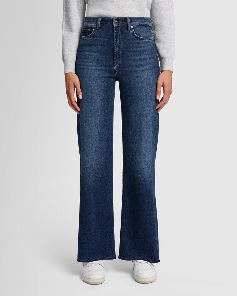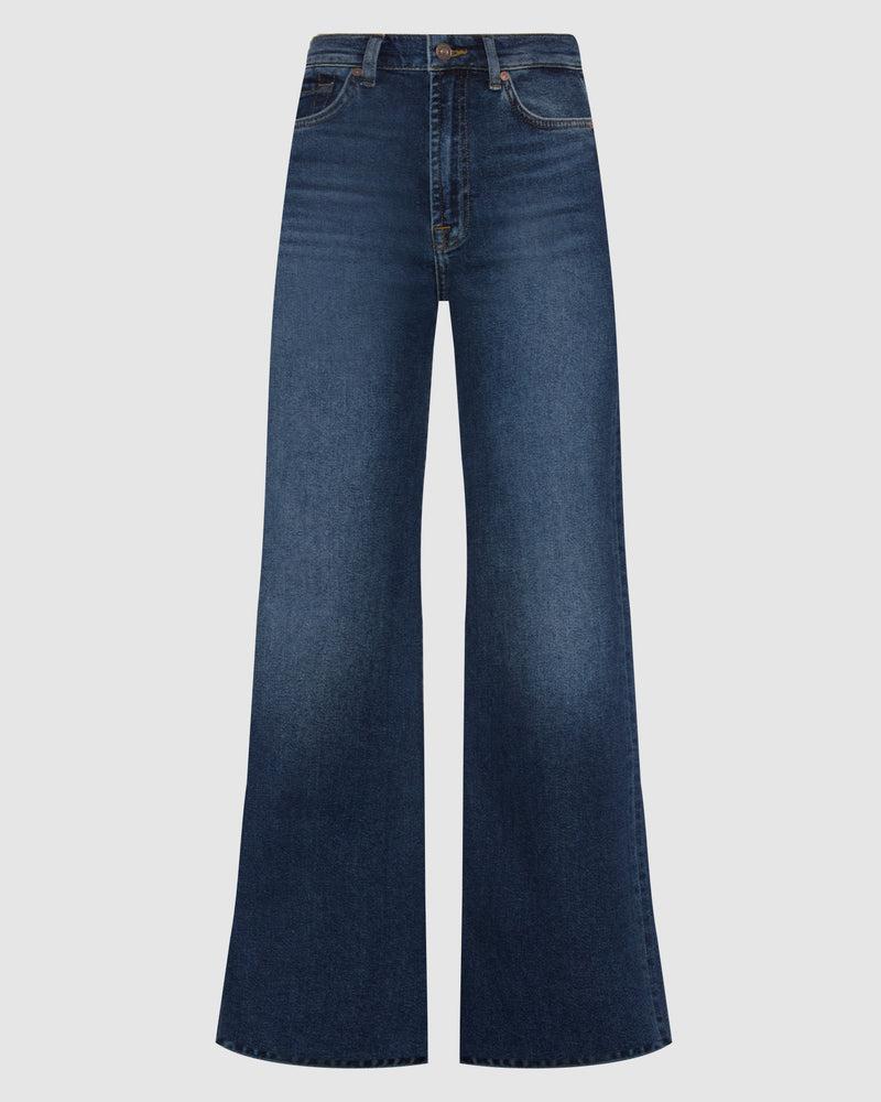 Fits like: An ultra high-rise full length denim with wide legs. Fitted through the hips and thighs. Feels like: Buttery-soft to the touch with a vintage lived-in feel. Like your favorite pair of jeans you've broken in for years. Luxe Vintage is a structured fabric with subtle stretch to it. The Details: Dark blue wash