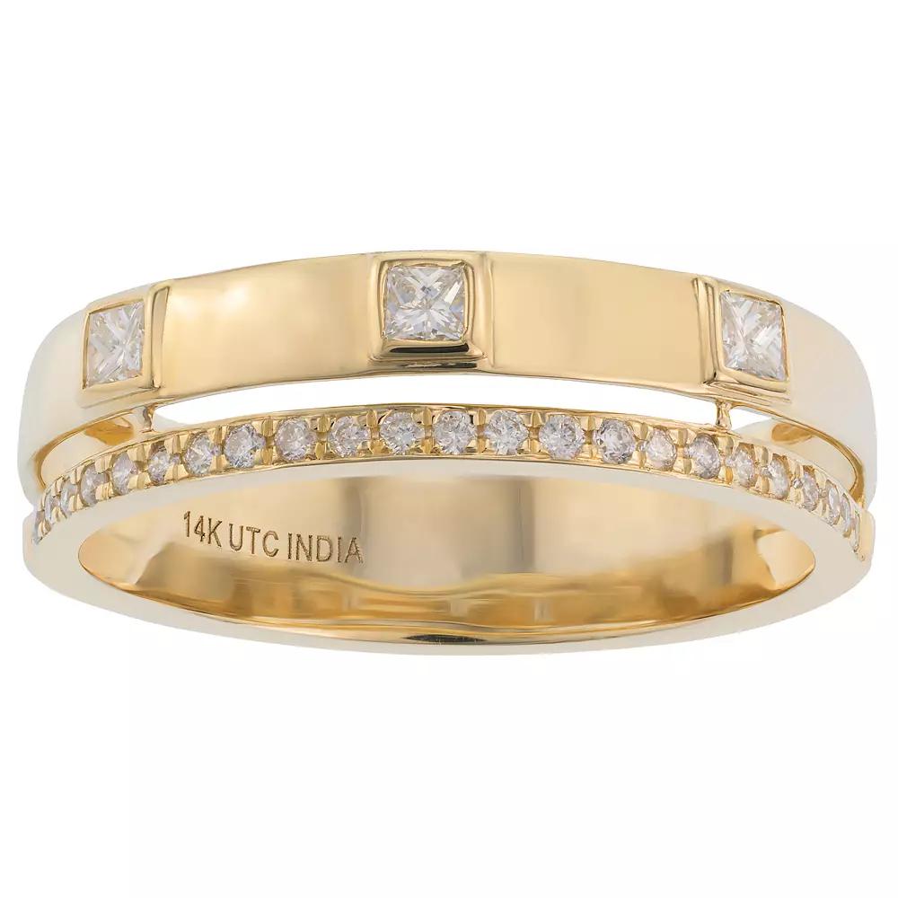 Beautifully decorated with round- and princess-cut diamonds, this Luxle ring is an unforgettable accent to your wardrobe. Metal: 14k gold Includes: jewelry pouch & gift box Width: 5.51 mm Finish: polishedDIAMOND DETAILS Total weight: 1/4 ct. Color grade: G-H Clarity: I1-I2 Shape: princess cut, round, square Setting: bezel, micro pave Gemstones may have been treated to enhance their appearance. Special care may be required. Please visit our Gemstone Treatment & Special Care Guide for more information. Image(s) may be enlarged to show detail. Please note, due to the high value of this item, a signature may be required upon delivery. Diamond weights are approximate. Diamond Total Weights may vary between .01 and .13 ct. Some diamonds consist of fewer than 17 facets. Size: 6. Color: Yellow. Gender: female. Age Group: adult.