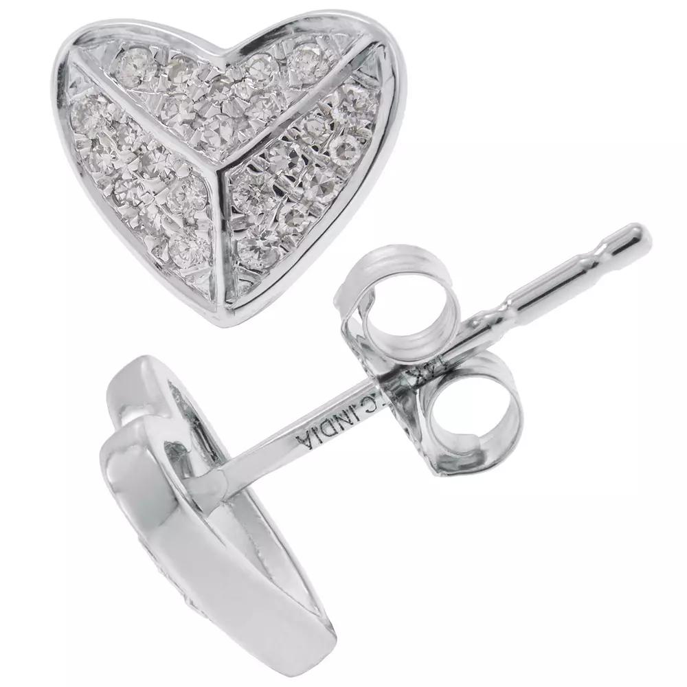 LUXLE 14k White Gold 1/6 Carat T.W. Diamond Heart Stud Earrings, Womens