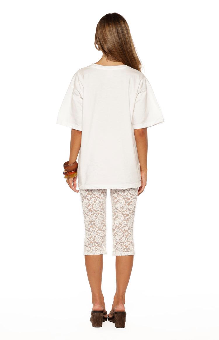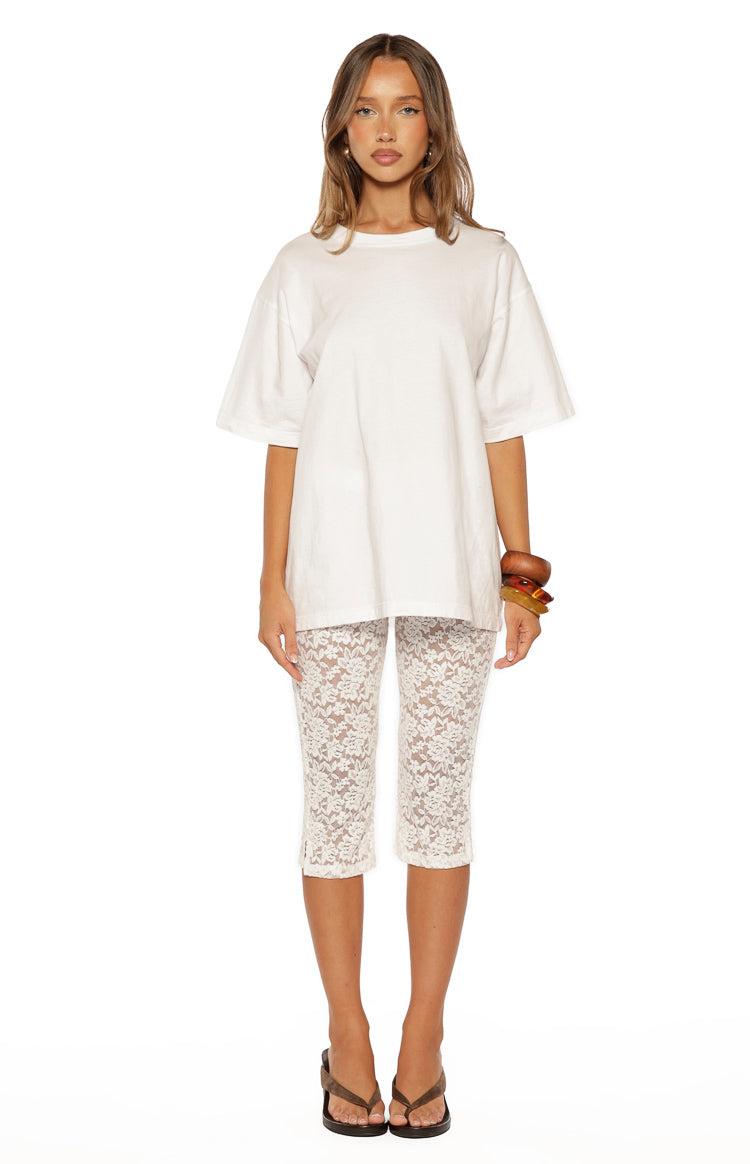 White Lace Mid Rise Capri Pants How to style:Tap into the trend of the moment with our Lydia Lace Mid Rise Capri Pants. Crafted from stretchy lace fabric, these capris offer a flattering mid-rise fit that hugs your curves in all the right places. Style them with a baby tee and kitten heels for a playful, nostalgia-inspired outfit. Features: Capri length Lace material Stretch fabrication Unlined Perfect for parties, festivals, and summer nights!