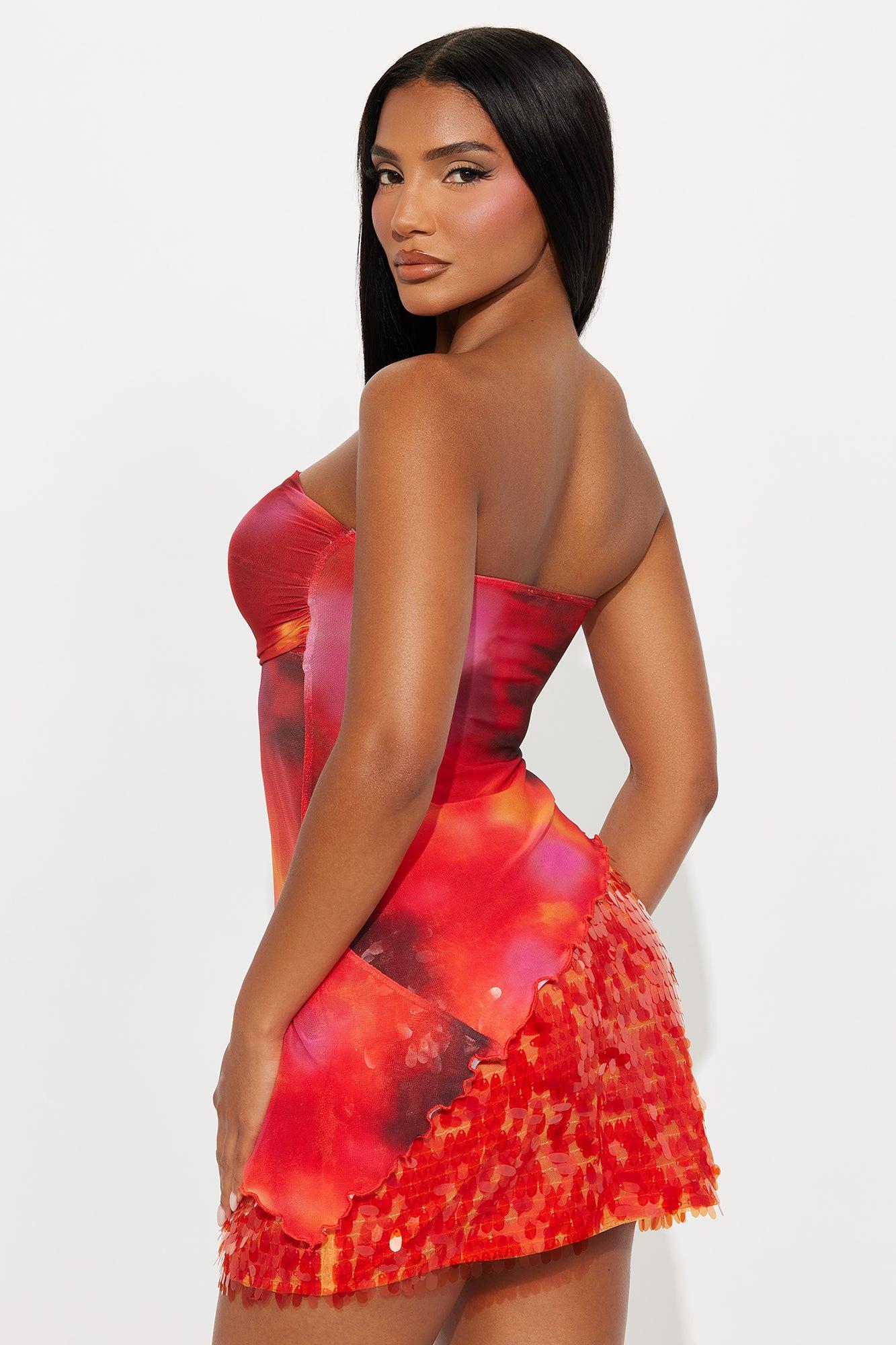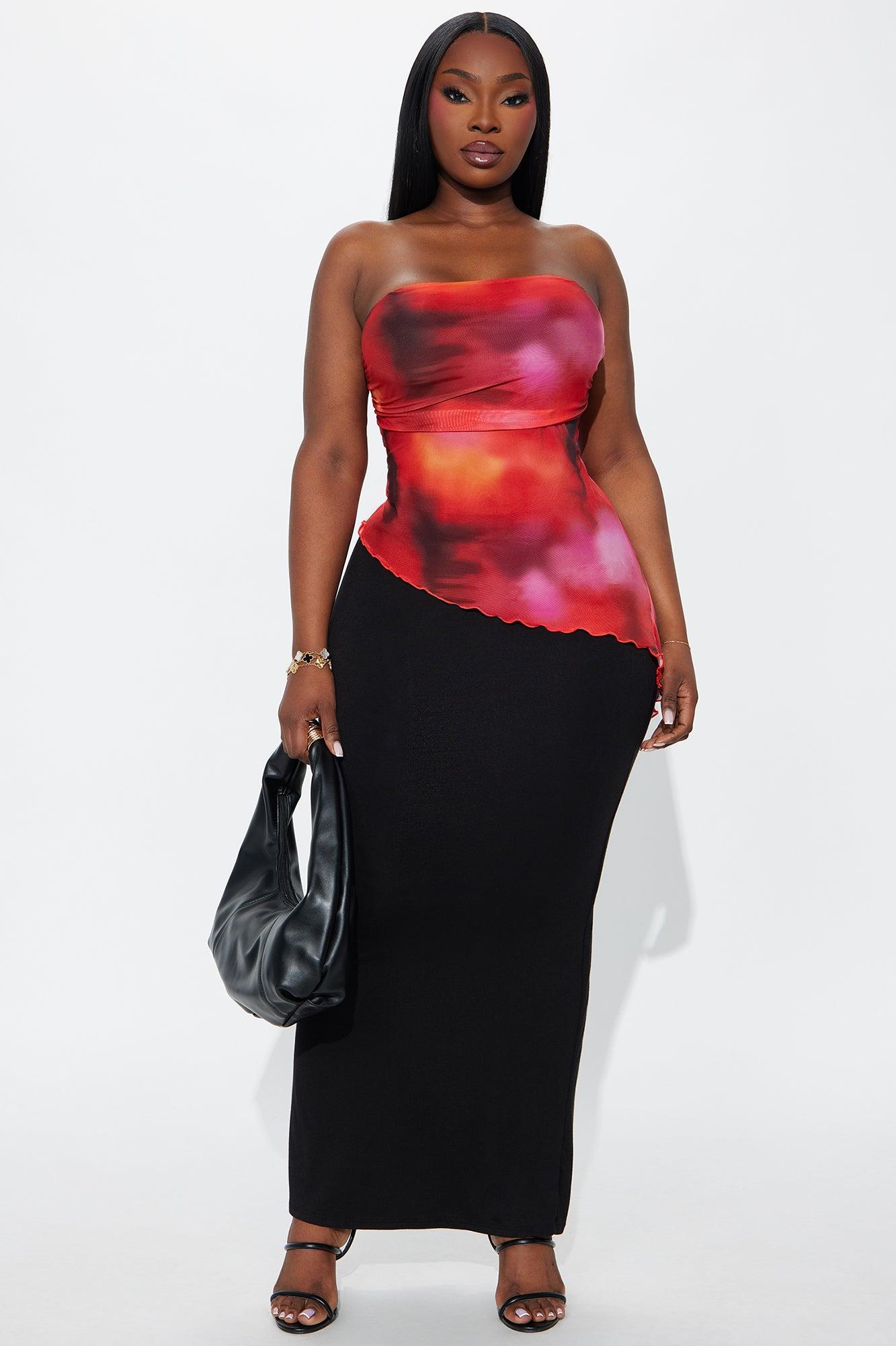 Lynette Asymmetrical Mesh Tube Top - Red/combo Female