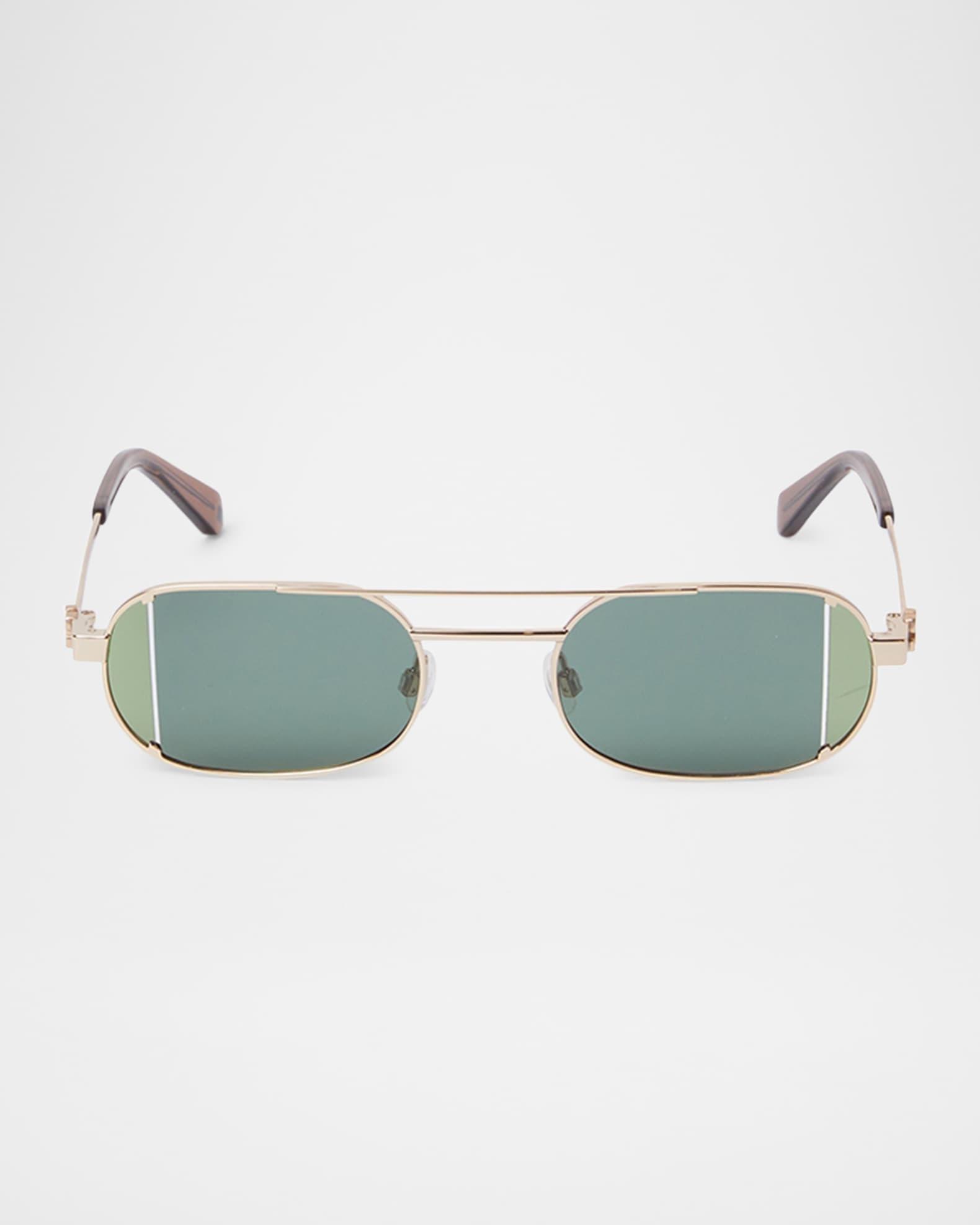 Off-White "Lynn" oval two-tone sunglasses in metal and plastic Eye/bridge/temple (in mm): 55-22-145 Solid lenses Adjustable nose pads Thin, tapered arms Metal/plastic 100% UVA/UVB protection Made in Italy Proposition 65 warning for California residents