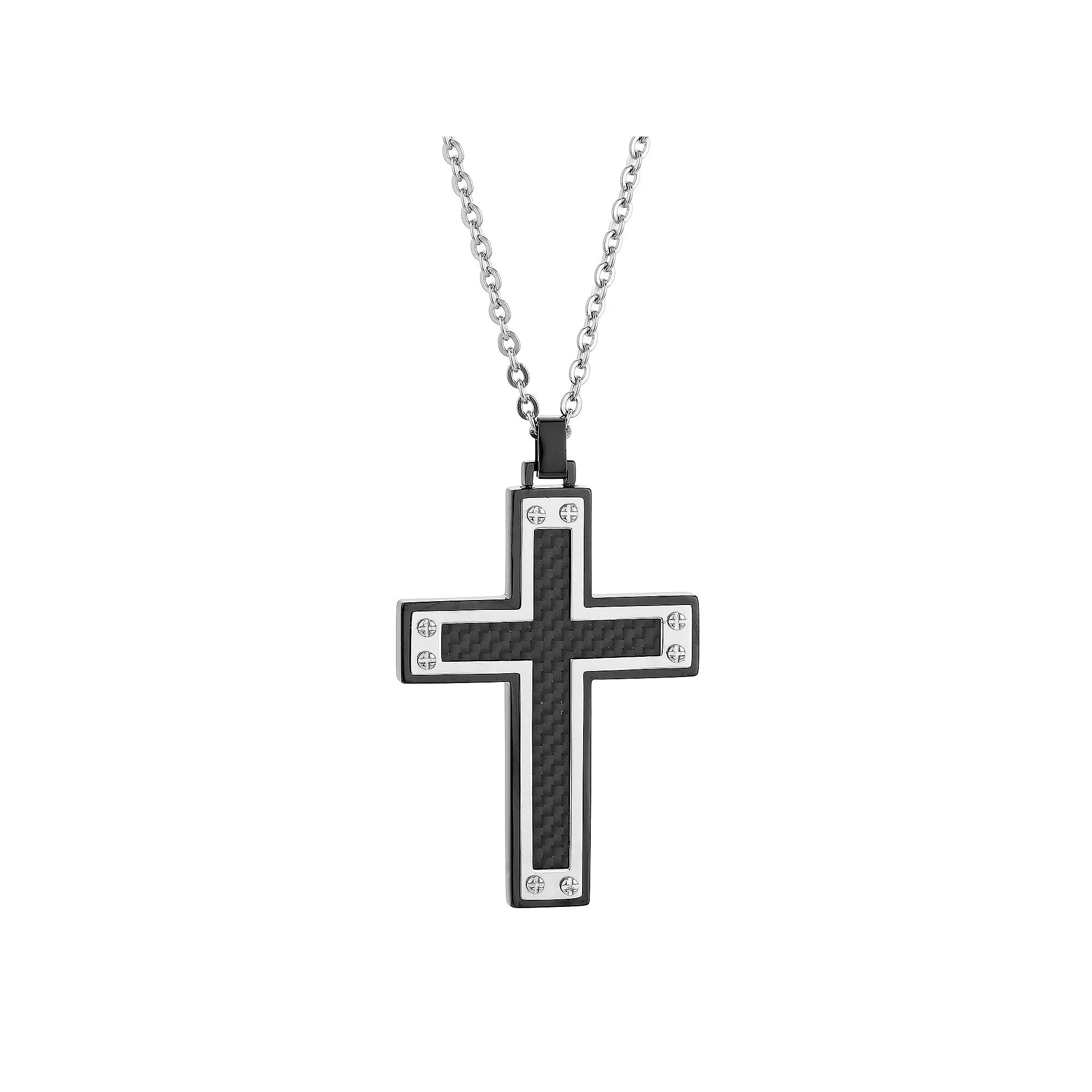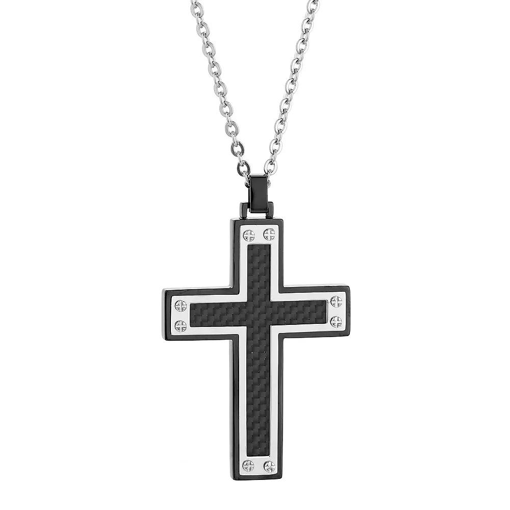Featuring an eye-catching, carbon-fiber inlay, this LYNX cross pendant helps distinguish your style from the rest. Featuring an eye-catching, carbon-fiber inlay, this LYNX cross pendant helps distinguish your style from the rest. Metal: stainless steel Chain length: 22 in. Packaging: boxed Plating: black ion plated Finish: polished Pendant size: 2.09"L x 1.3"W Chain type: cable Size: 22". Color: Multicolor. Gender: male. Age Group: adult.