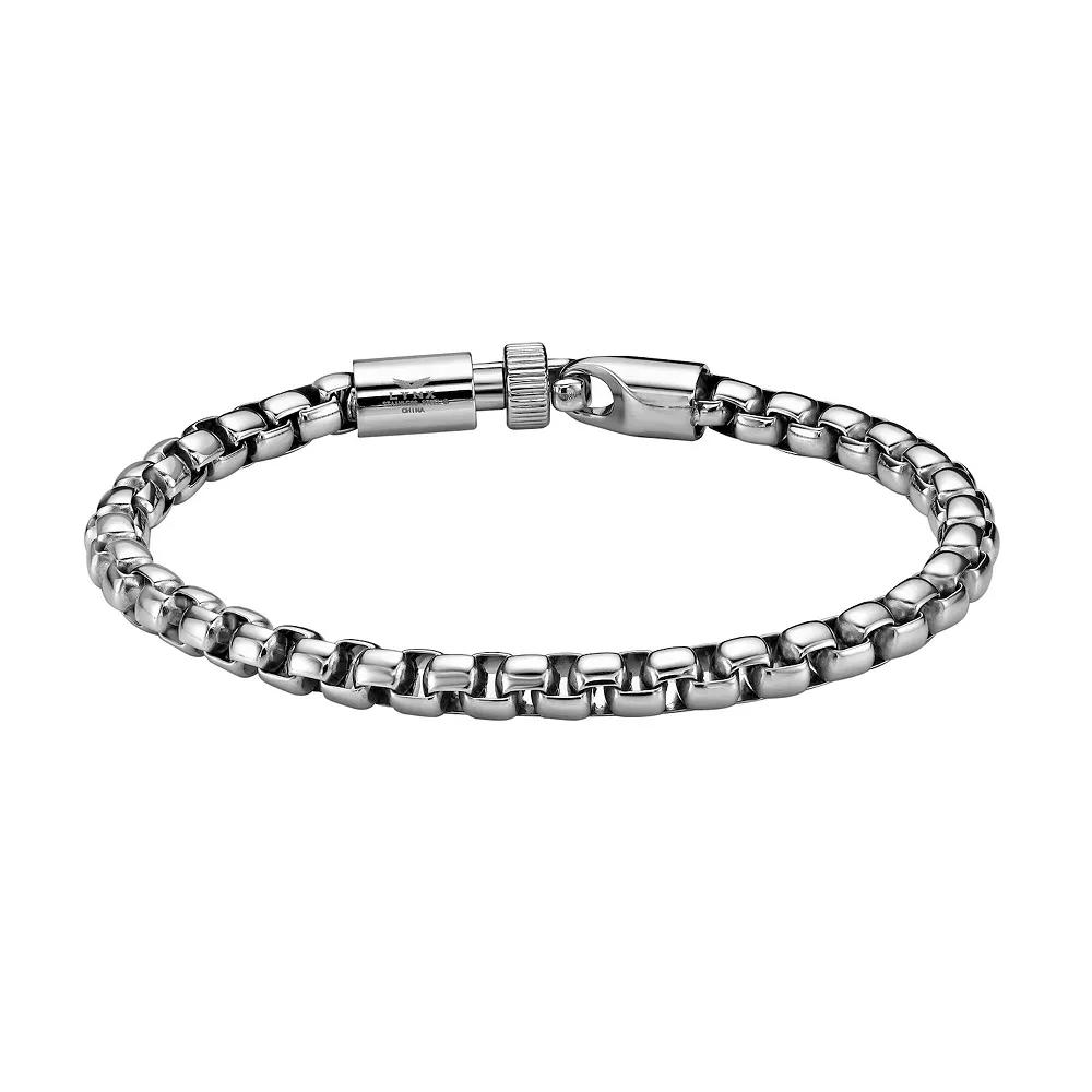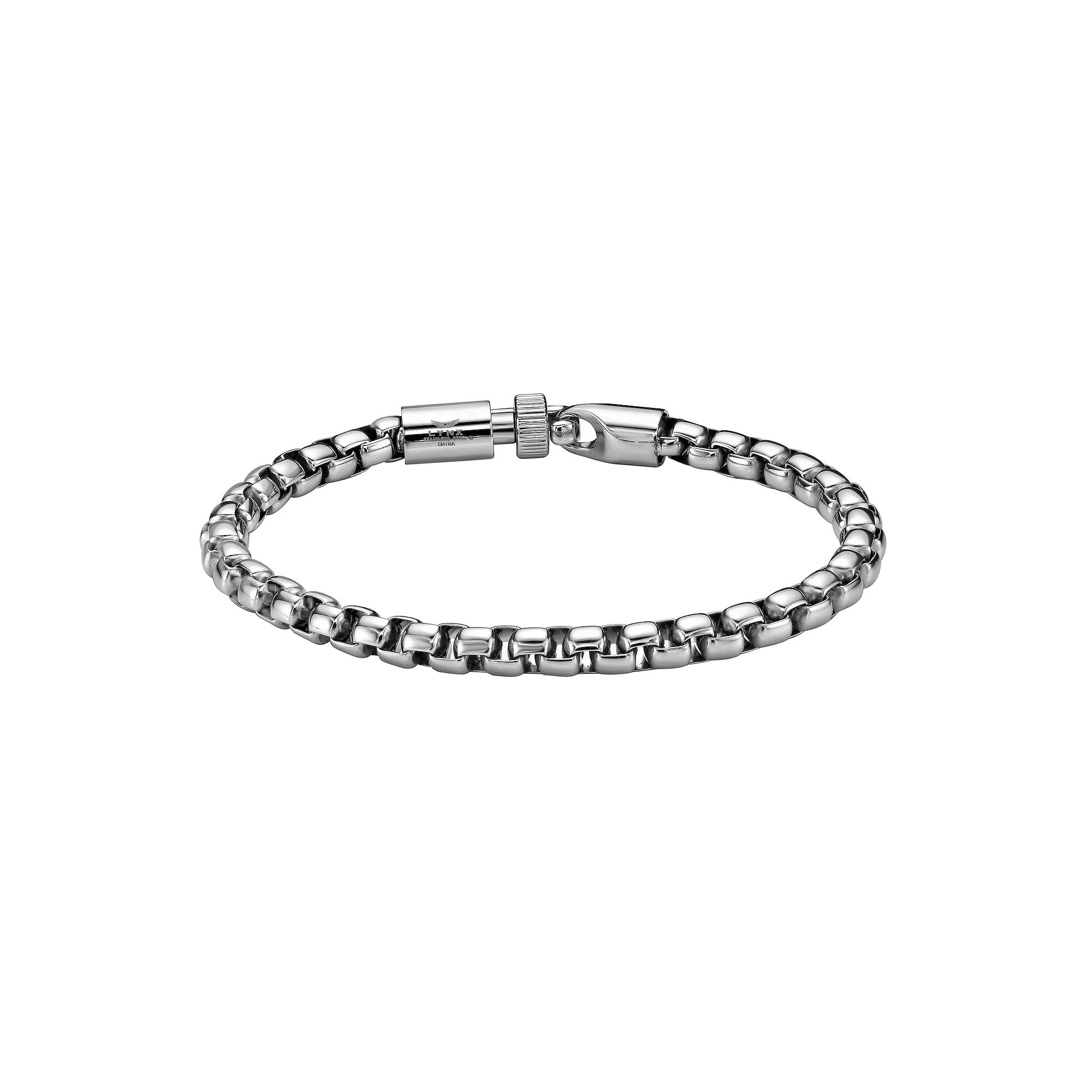 Bring out your unique sense of style when you pair this LYNX stainless steel round box chain bracelet with your everyday wardrobe. Bring out your unique sense of style when you pair this LYNX stainless steel round box chain bracelet with your everyday wardrobe. FEATURES Chain type: box Clasp: safety Length: 8.5 in. Chain width: 10 mm Metal: stainless steel Finish: polished Packaging: boxed Size: 8.5. Color: White. Gender: male. Age Group: adult.