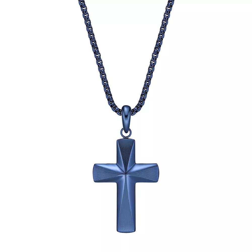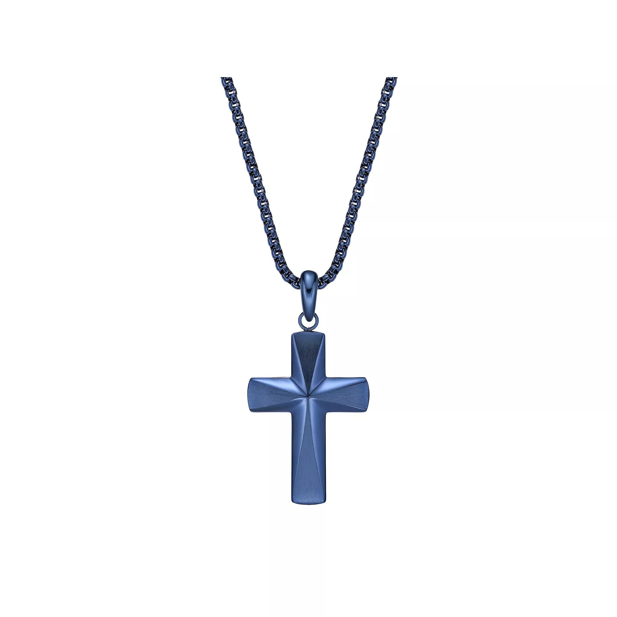 LYNX Men's Blue Ion Plated Stainless Steel Cross Pendant Necklace,  Product Image