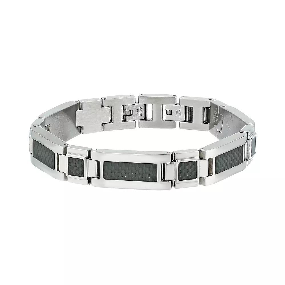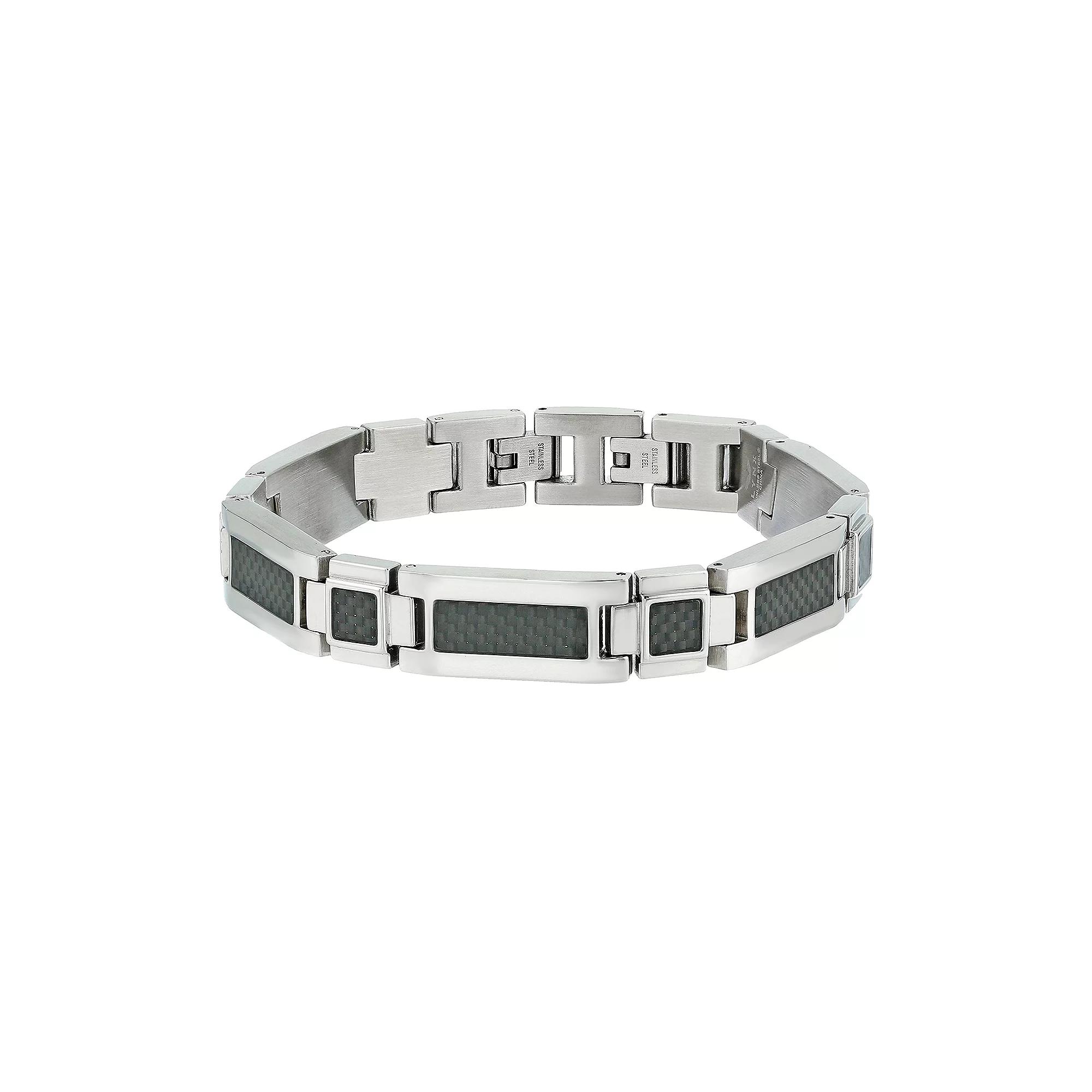 A carbon-fiber inlay and stainless steel finish give this men's LYNX chain bracelet a timeless look. A carbon-fiber inlay and stainless steel finish give this men's LYNX chain bracelet a timeless look. Length: 8.5 in. Clasp: fold-over Metal: stainless steel Finish: polished Carbon fiber Inlay Nickel free Packaging: boxed Gift Givers: This item ships in its original packaging. If intended as a gift, the packaging may reveal the contents. Gemstones may have been treated to enhance their appearance. Special care may be required. Please visit our Gemstone Treatment & Special Care Guide for more information. Size: 8.5". Color: Grey. Gender: male. Age Group: adult.