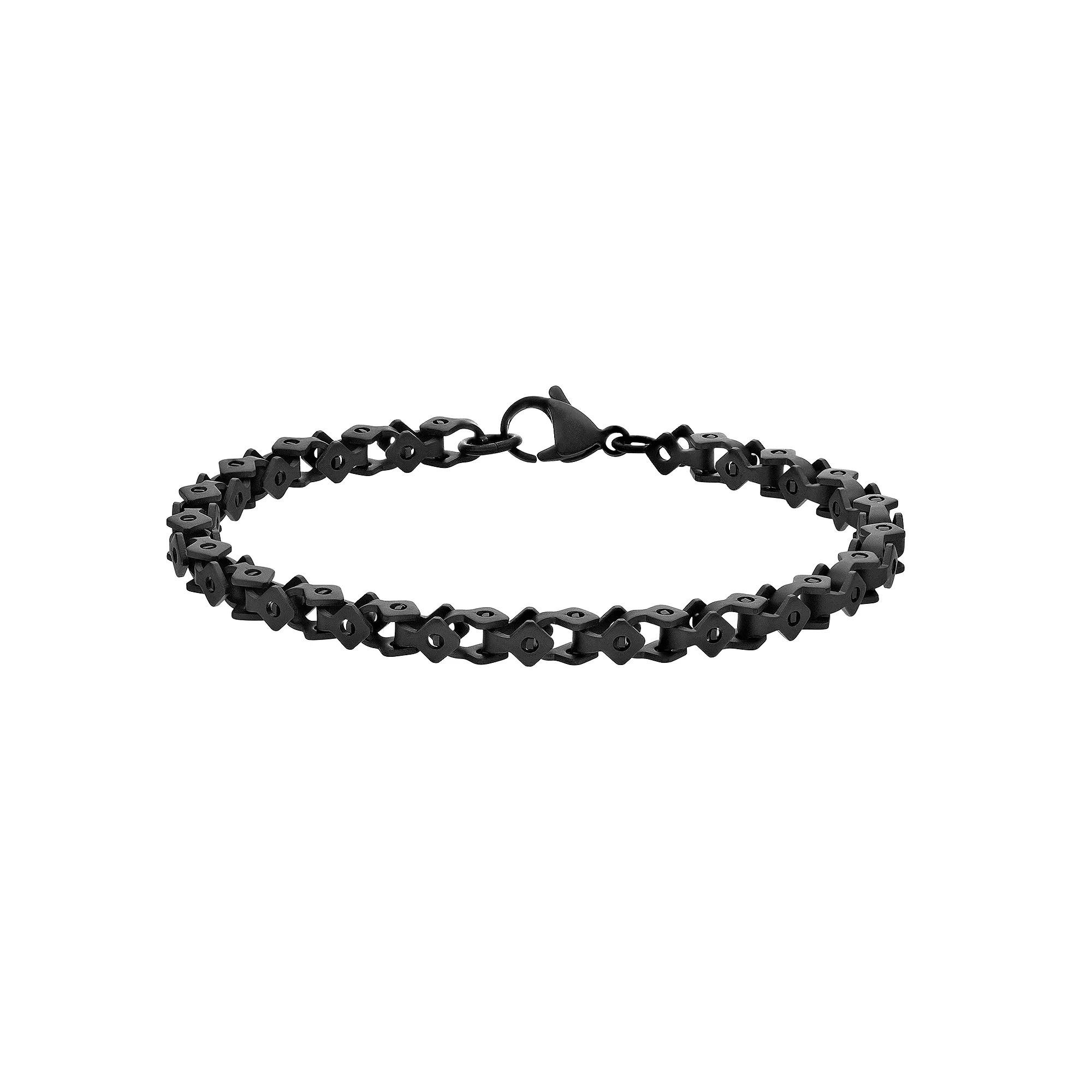 Accessorize his look with this mens bracelet from LYNX. Accessorize his look with this mens bracelet from LYNX. Chain type: link Chain width: 5 mm Length: 8.5 in. Metal: stainless steel Plating: black ion plated Finish: polished Packaging: boxed Additional details: square link chain Size: 8.5. Gender: male. Age Group: adult.