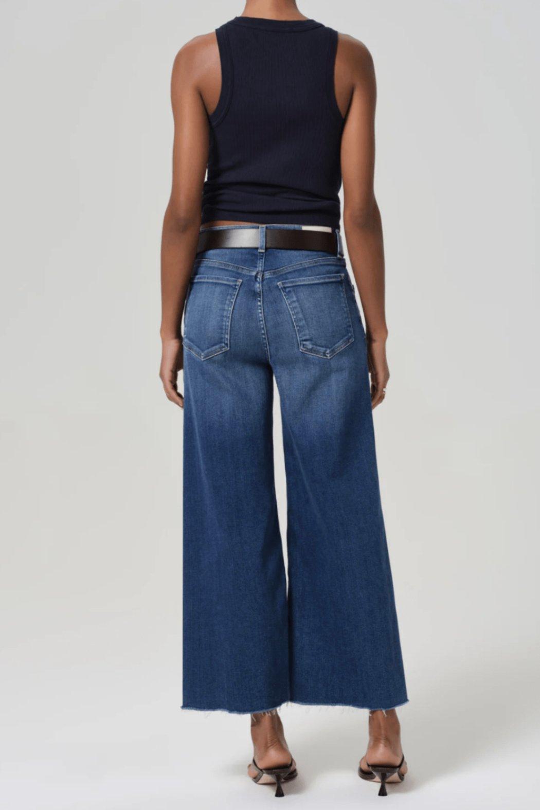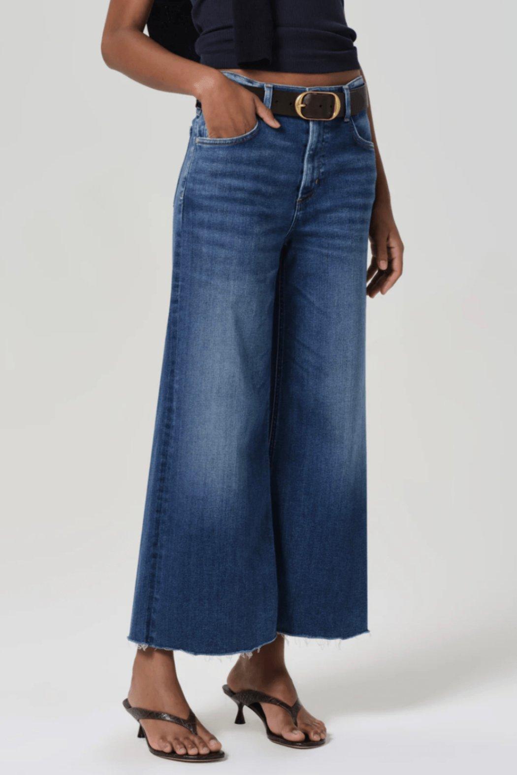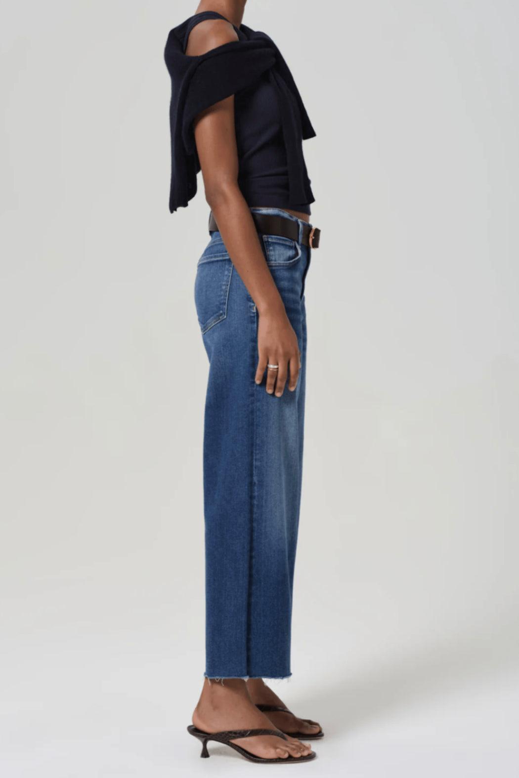 Our Lyra is a vintage inspired silhouette that sits high on the waist with an easy, relaxed top block cut with a cropped inseam with a voluminous raw hem wide leg.