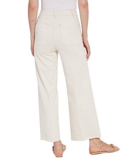 From Lysse, these leggings feature: Wide leg silhouette Concealed signature waistband Back patch pockets Belt loops Raw edge hem Approx. 28" inseam Rayon/nylon/spandex Machine wash cold/line dry Imported.