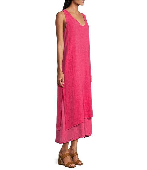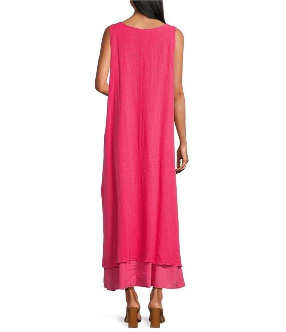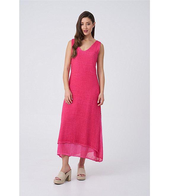From M Made in Italy, this dress features:Cotton/ linen fabricationV-necklineSleevelessHigh low hem, side slitsFully linedPull-on constructionApprox. 54" lengthCotton/linenHand wash, dry clean or machine wash cold, flat dryImported.