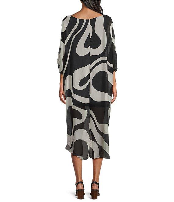 M Made in Italy Crew Neck Elbow Sleeve Silky High-Low Midi Dress