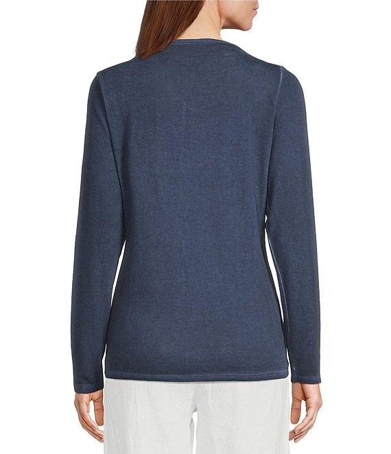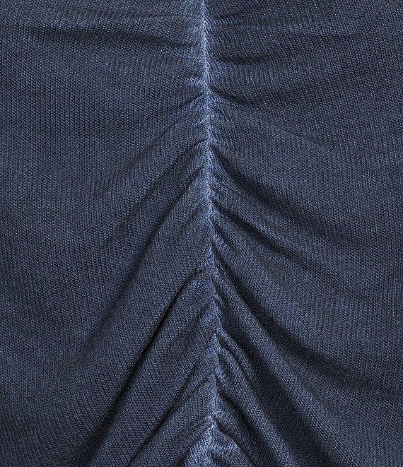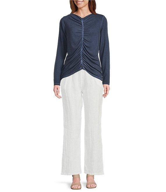 M Made in Italy Knit Ruched Front V-Neck Long Sleeve Hi-Low Top