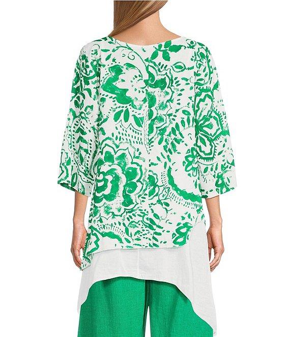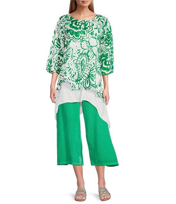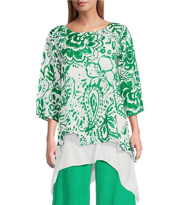 From M Made in Italy, this tunic features: Linen fabrication Scoop neckline 3/4 sleeves roll sleeves Shark bite hemline Pullover construction Approx. 28" outer length, 35.5" inner length Linen/cotton Hand wash cold/flat dry or dry clean Imported.