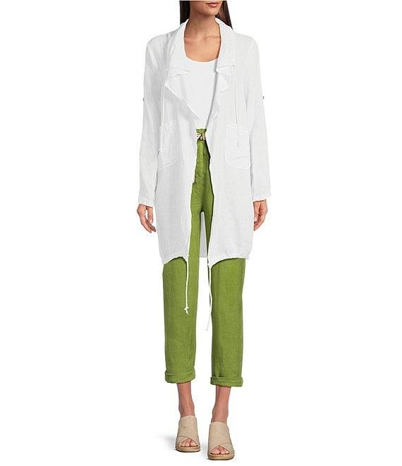 From M Made in Italy, these pants feature: Cropped leg Comes with belt Functional side pockets Cuffed hem Pull-on construction Approx. 26" inseam Linen Hand wash Imported.