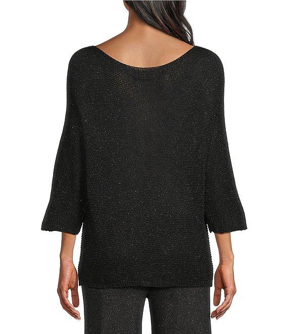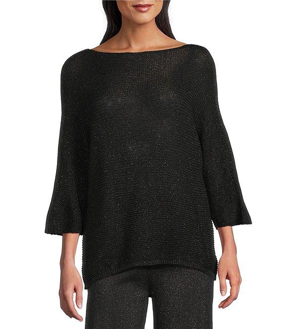 M Made in Italy Metallic Knit Boat Neck 3/4 Sleeve Top