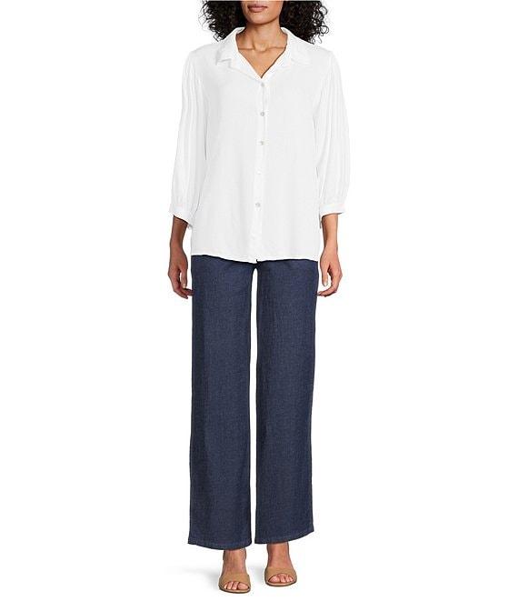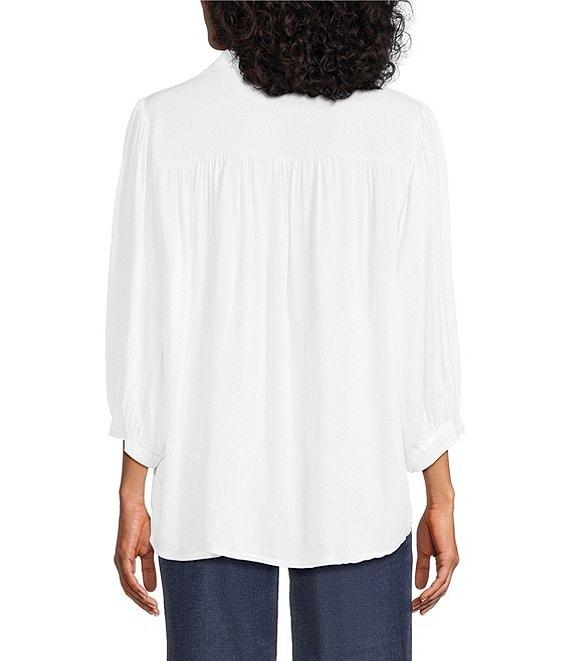 M Made in Italy Point Collar 3/4 Puff Sleeve Button Front Blouse