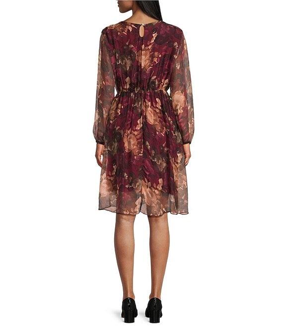 From M Made in Italy, this dress features: Woven silky fabrication A-line silhouette Crew neckline Long sleeves Cinched waist Lined Floral print Pull over construction Approx. 41.5" length Viscose/silk : Lining; viscose/spandex Hand wash cold/flat dry Imported.
