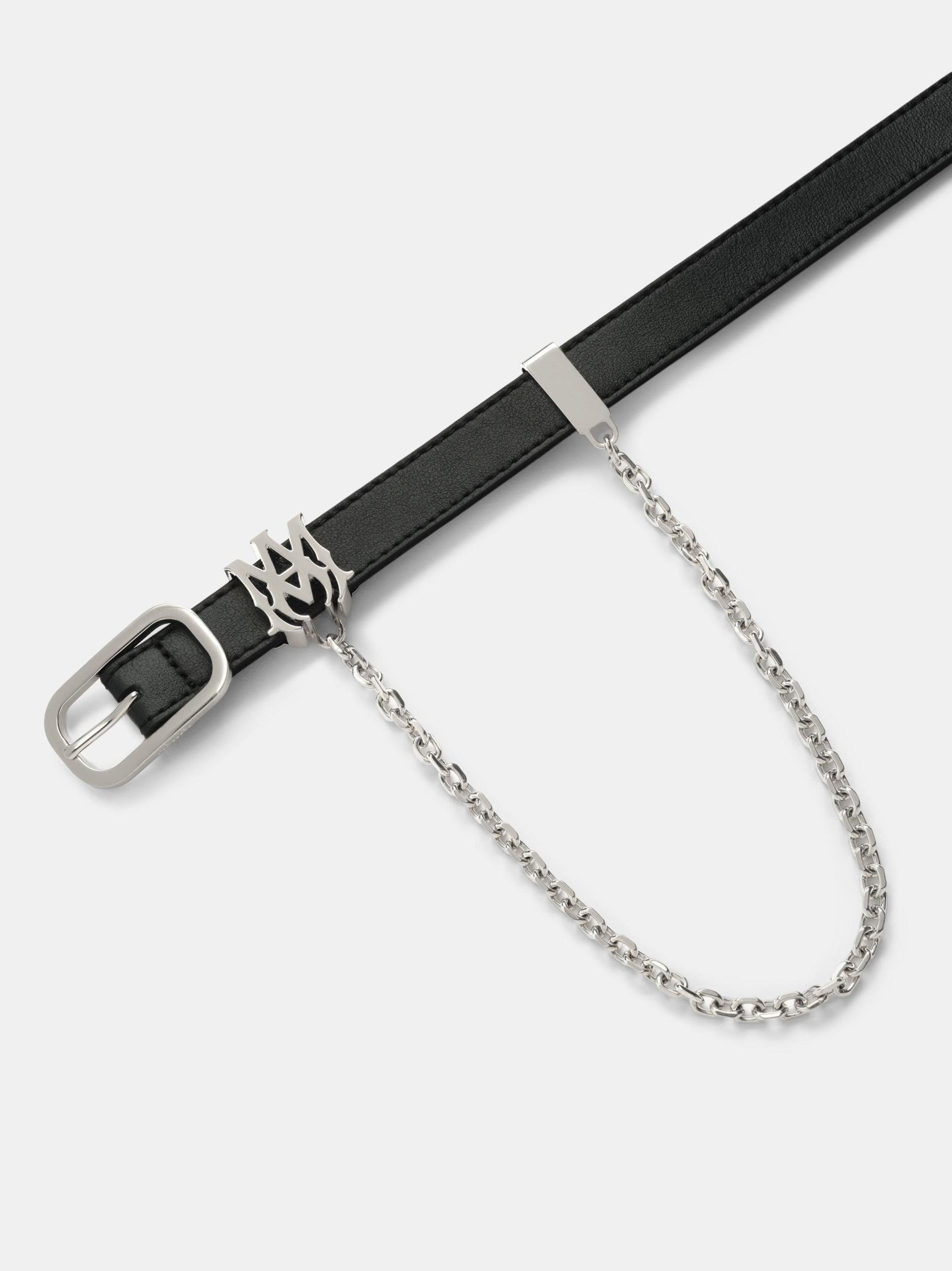 House signature motifs illustrate fine leather goods for Spring-Summer 2025. The MA Chain Belt features a 2 cm width and is finished with a chain and custom MA icon hardware. SPRING-SUMMER 2025 COLLECTION MADE IN ITALY 100% LEATHER EACH PIECE IS METICULOUSLY CRAFTED AND INHERENTLY UNIQUE. SLIGHT VARIATIONS IN THE ARTWORK ARE A NATURAL RESULT OF THE PRINTING PROCESS AND CONTRIBUTE TO THE DISTINCTIVE CHARACTER OF THIS PRODUCT.