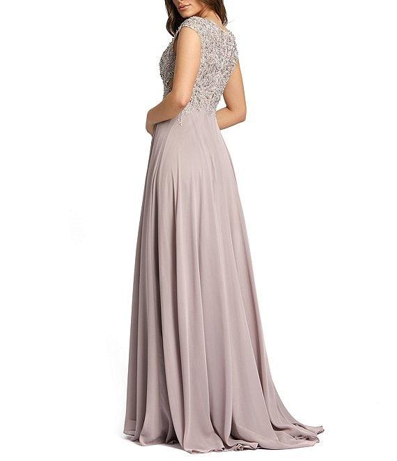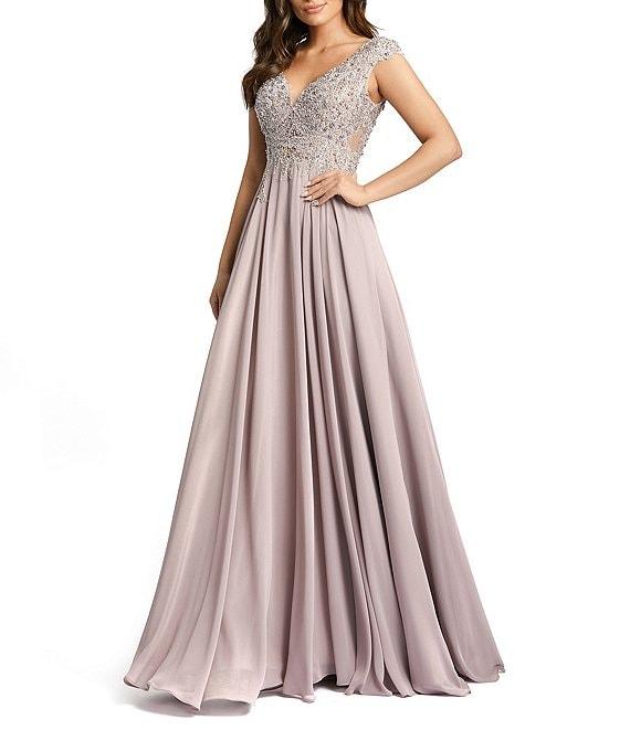 Mac Duggal Beaded Applique Bodice V-Neck Sleeveless A-Line Gown