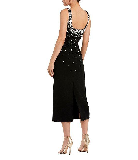 Mac Duggal Beaded Jersey Crepe Scoop Neck Sleeveless Midi Dress