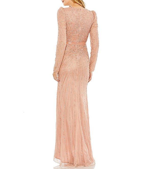 Mac Duggal Beaded Surplice V-Neck Long Sleeve Gown