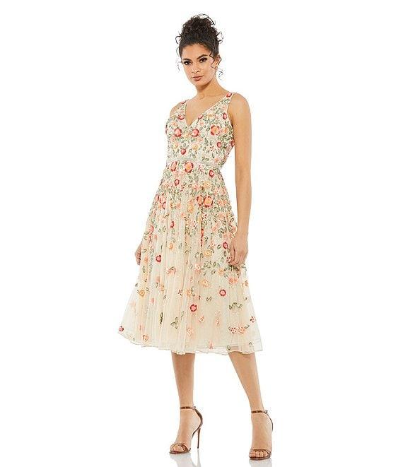 Mac Duggal Beaded V-Neck Sleeveless A-Line Midi Dress