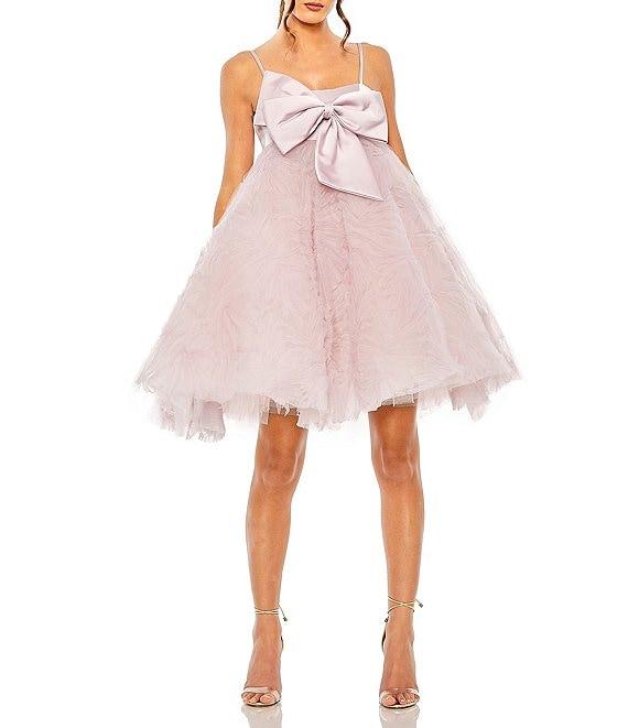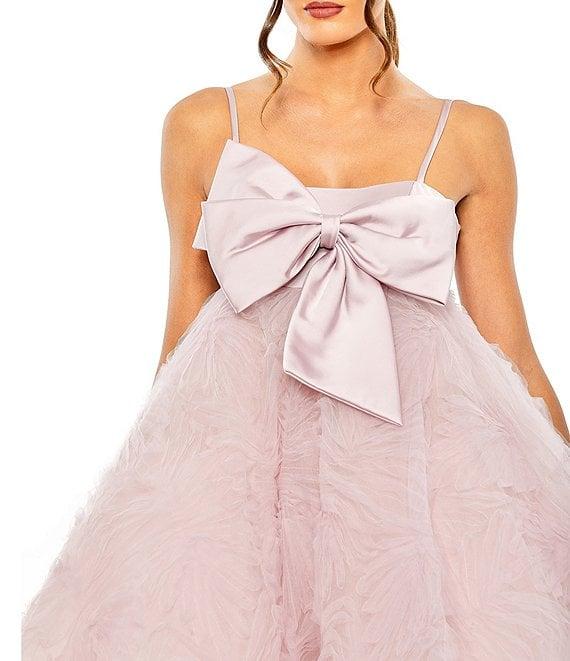 From Mac Duggal, this dress features: all over tulle fabrication A-line silhouette square neckline sleeveless bow bodice embellishment fully lined center zip back closure Approx. 35" in length from shoulder to hem polyester spot clean Imported.